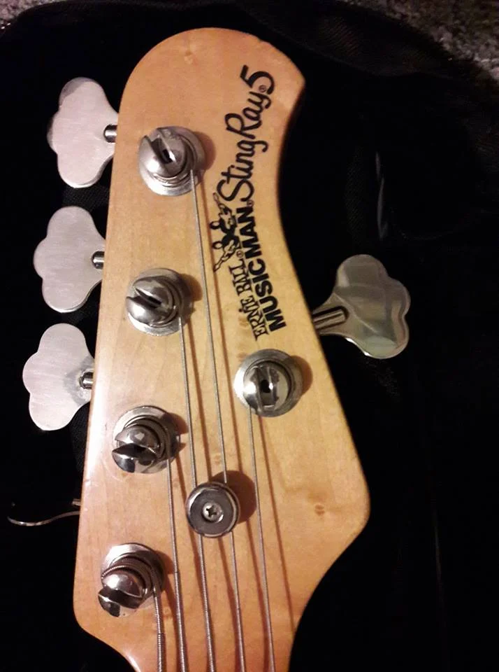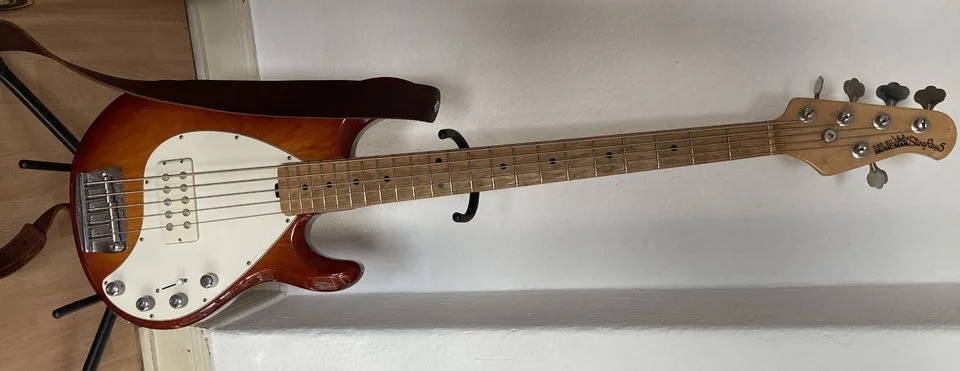 Toller Music Man Stingray 5 mit Birdseyemaple-Neck von 1993. Klingt und spielt sich fantastisch, beste H-Saite die ich je gehört habe. Hals ist super angenehm. Der Body hat ein paar Dings & Dongs, eben ein Player. Am liebsten zur Abholung in Hamburg.