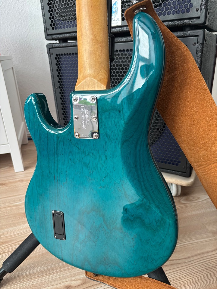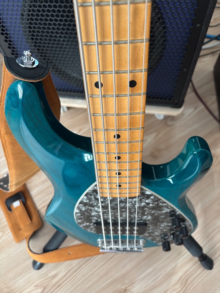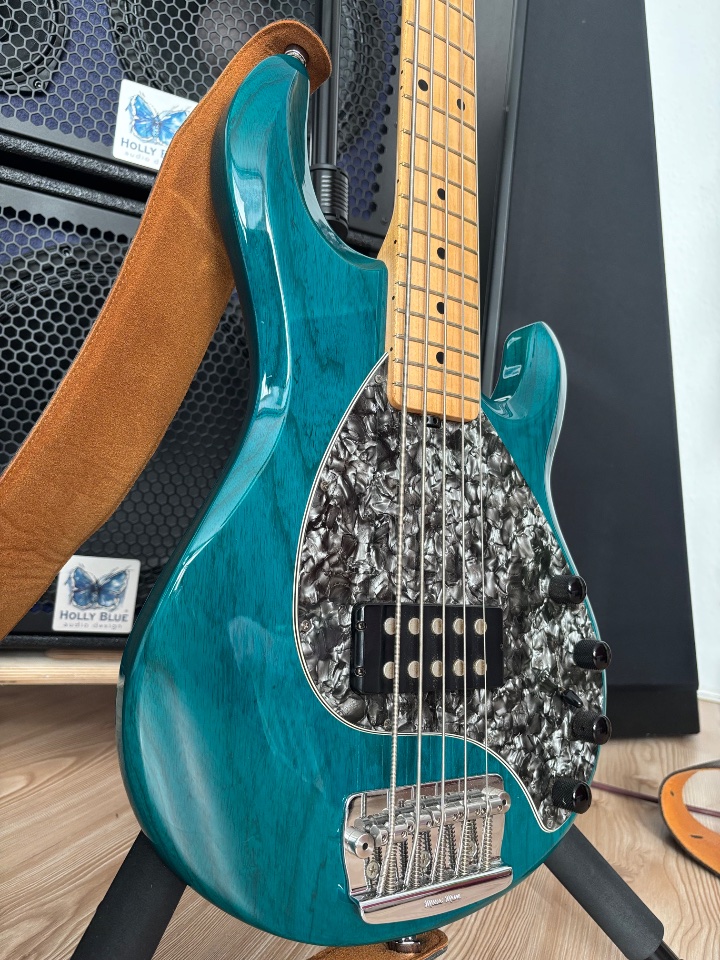 nach nunmehr zahlreichen Versuchen einen Fünfsaiter in meiner Band unterzubringen gebe ich es jetzt auf… daher ist dieser super gepflegte USA Stingray5 H von 2001 mit Mapleneck und wunderschöner Translucent Teal Lackierung in Original MM Koffer zu verkaufen.