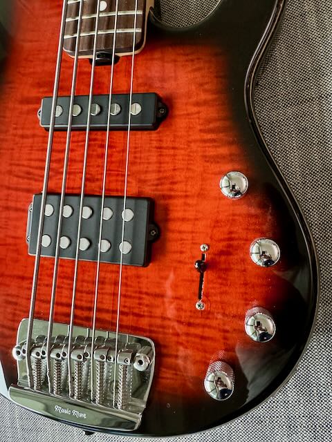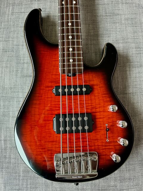 ... und ich nochmal, mit dem vorläufig letzten Bass: Ich verkaufe das 20th Anniversary Modell des Stringray 5-String. wie immer bei MusicMan rockt der Sound und die wunderschöne Holzdecke braucht keine weitere Erläuterung. Es gibt im Bereich des Pickup-Wahlschalters einen kleinen Riss im Lack, der wohl dem Alter geschuldet sein dürfte (immerhin gute 20 Jahre alt der Gerät).