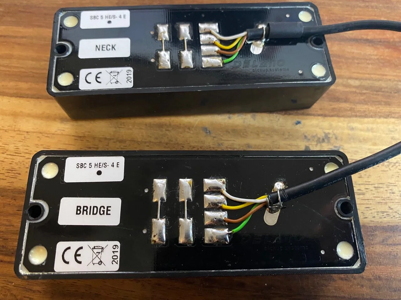 The same big dimensional 5-string sound our standard SBC 5 HE/S-E pickups are famous for, and many useful humfree tones on top through additional wiring and coil sensing options. Great P-cross coil impersonations with zero 50/60 cycle headaches on top of our perfectly voiced, airy sounding dual coil modes. Options that make sense for players with big ears who know what they want from a highend bass transducer that´s just made to deliver. If this bass could only hear.- with DELANO, it can even tell.