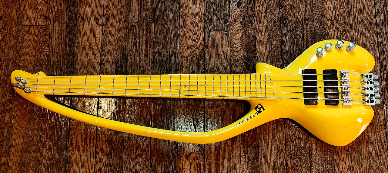Neuwertiger BassLab L-Bow V aus Oktober 2000 in Maserati-Gelb, mit einem brandneuen Richter/BassLab 3-Band-Vorverstärker (mit semiparametrischen Mitten und passiver Klangregelung), komplett überholt von Heiko HOEPFINGER, dem Inhaber von BassLab (Rechnungen über mehr als 1500 EUR).
