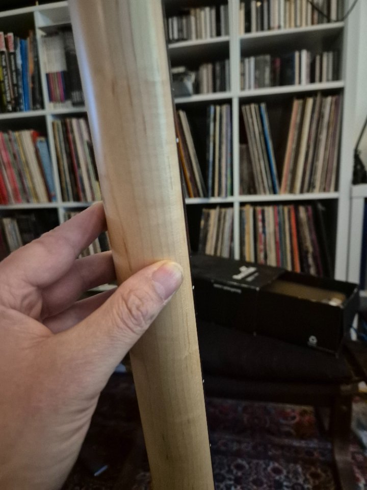 Würde ihn als neuwertig bezeichenen, keine Dings oder Dongs. Am Hals gibt es eine Unebenheit, könnte auch die Maserung sein. Habs versucht auf einem Bild sichtbar zu machen.