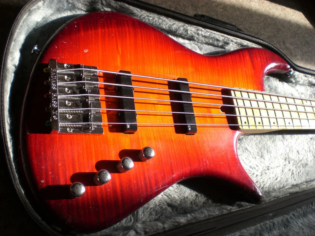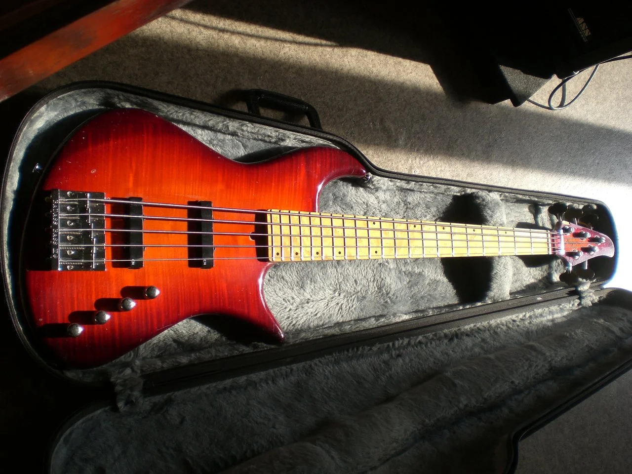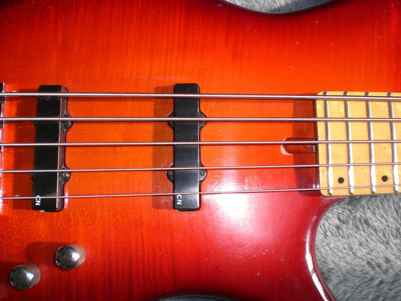 Figured maple top, cherry burst finish.