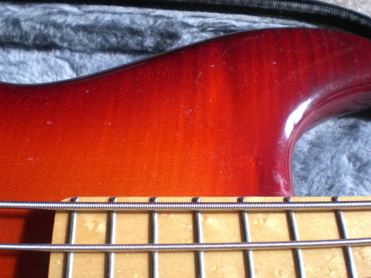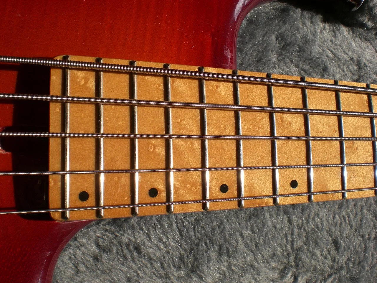 BIRD's EYE maple fingerboard with glossy varnish, few scratches for its age.