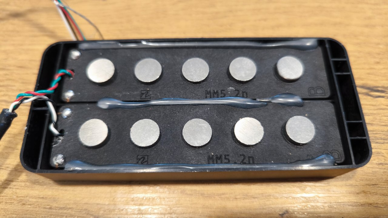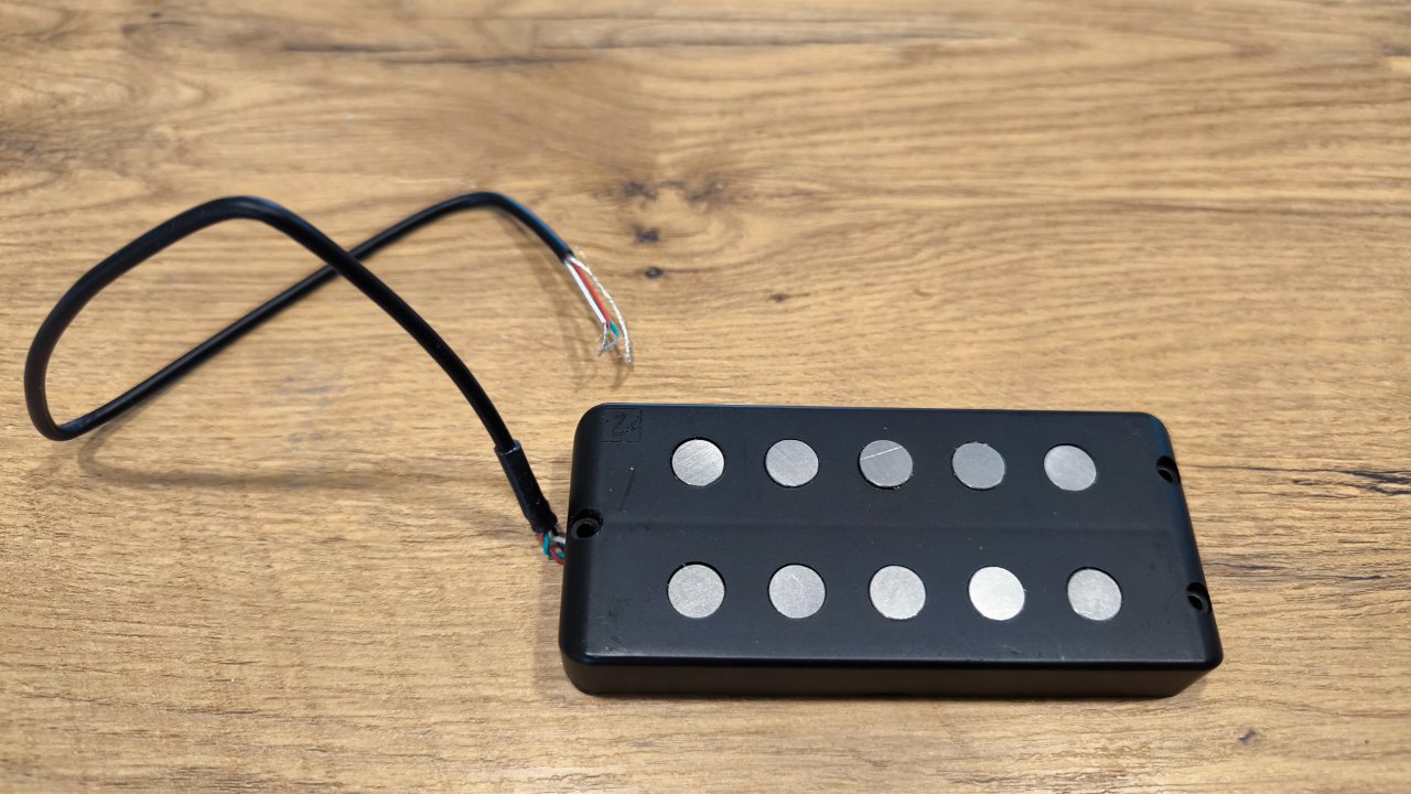 Eine Version für 5-Saiter des ansonsten identischen MM 4.2, der selbst eine genaue Kopie eines frühen Pre-Ernie Ball Pickups ist. Er bietet Alnico V Magneten und schweren Fromvar Draht für einen authentischen fetten Ton mit viel Punch und Growl. Der MM 5.2 ist ein Doppelspul – Pickup der sereille, parallel oder als Single – Coil verdrahtet werden kann. Mit schwarzem Cover (sichtbare Pole – Pieces).