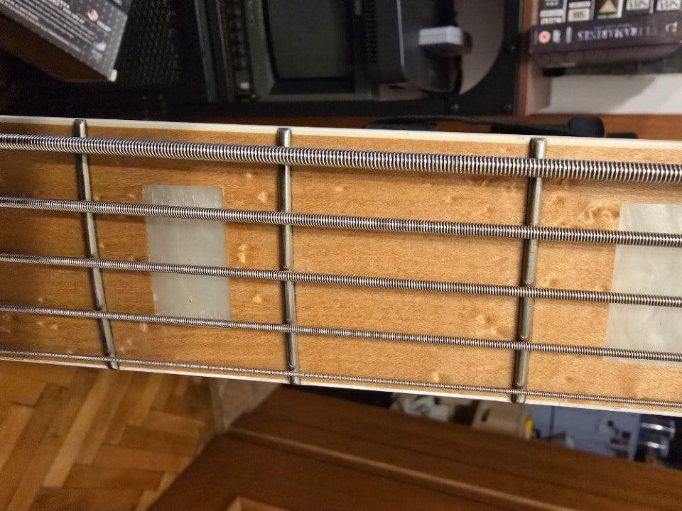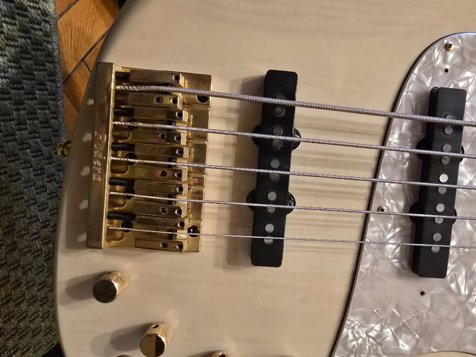 2 band preamp eq, it also has tone control. I am not sure if it is a Pope or Haz preamp, there is a picture of the electronics. 35 inch scale, 4.5 kg.