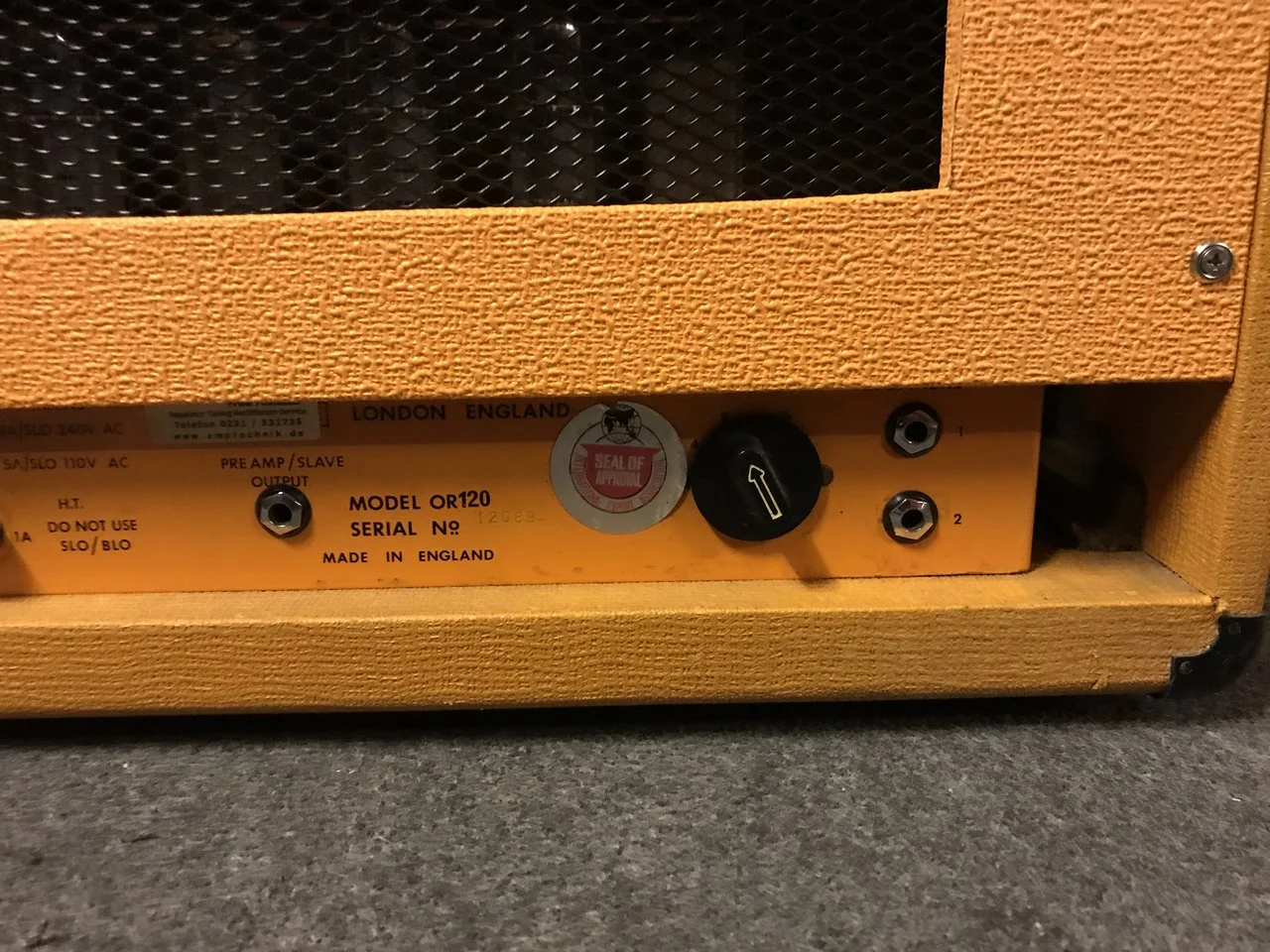 Zum Verkauf steht ein gebrauchter Vollröhrenverstärker der Firma Orange Modell OR120. Der AMP ist eine 120Watt Vollröhre aus vier EL34. Der AMP ist gebraucht, befindet sich aber in einem für sein Alter guten Zustand (vgl. Bilder). Als ich den AMP bekommen habe, fehlte die Rückwand diese wurde neu angefertigt so dass der AMP nun wieder eine stimmige Optik hat. Der AMP wurde regelmäßig bei Frank Finkhäuser in Dortmund gewartet. Das letzte mal ist aber schon ein paar Jahre her, aktuell ist er etwas noisy, so dass eine Wartung/Durchsicht sicherlich sinnvoll wäre. Ansonsten funktioniert der AMP einwandfrei.