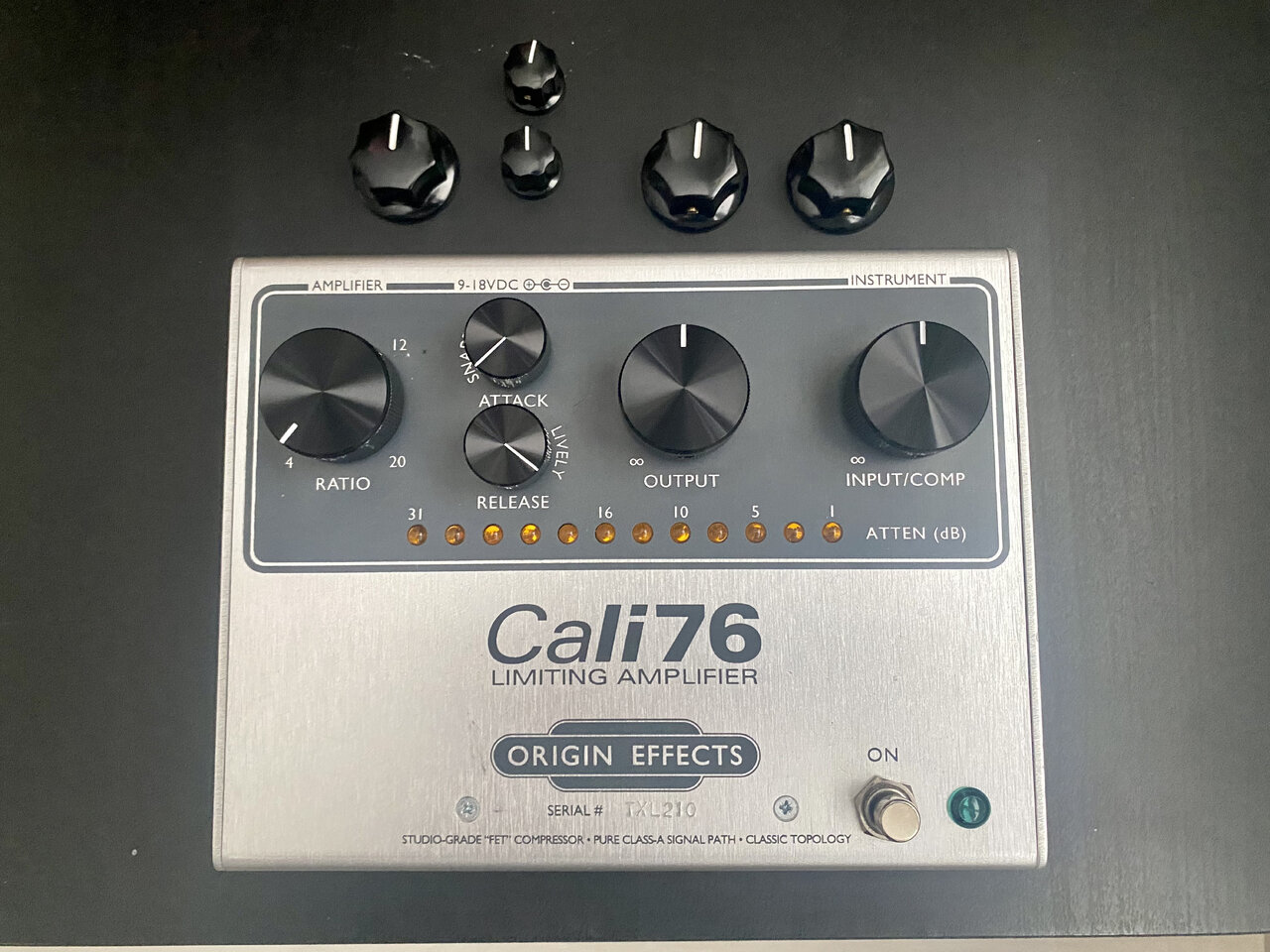 For sale is the big Origin Effects Cali76 TX-L. This is the version with the superb Lundahl transformer. The pedal is in excellent condition, comes with original box and fancy aluminium knobs (original knobs included of course). I'll cover the shipping costs inside EU