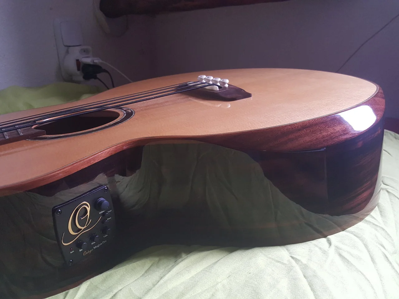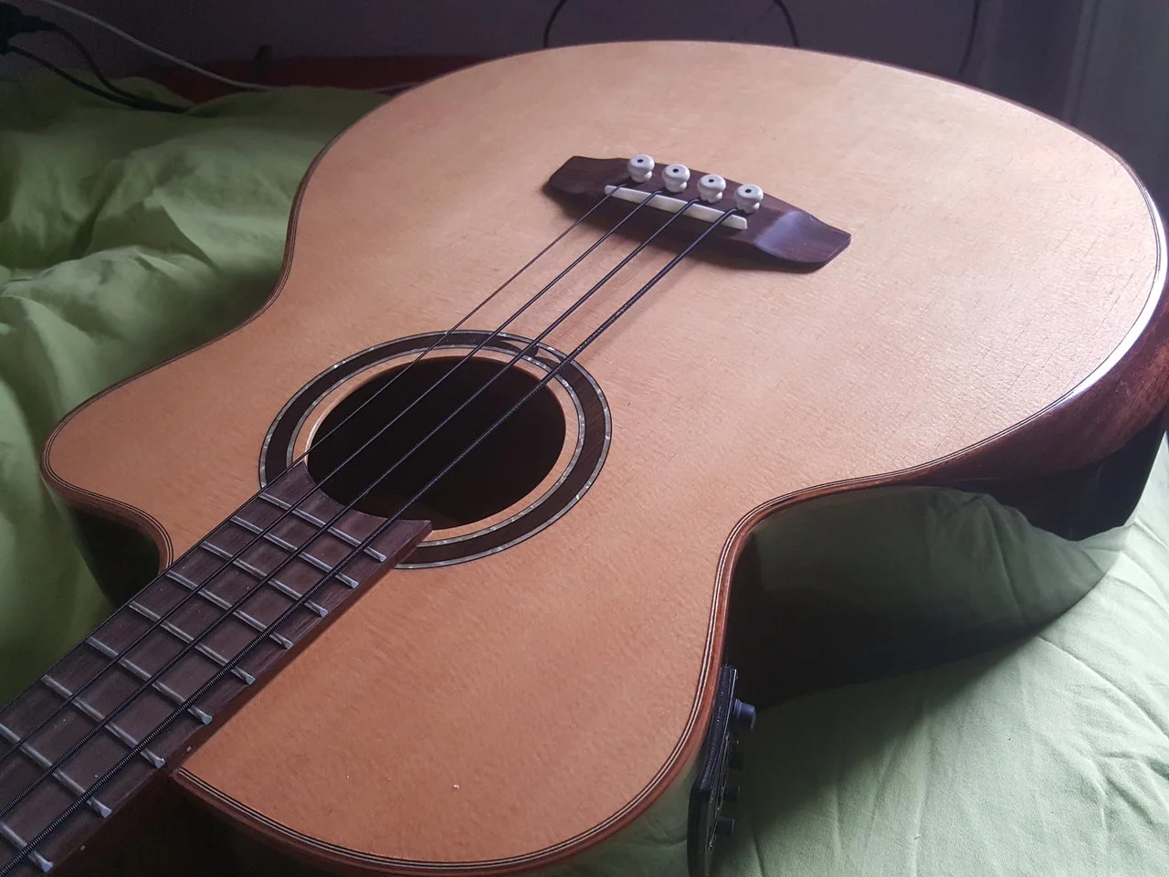 Wunderschöner Ortega Akustikbass 4-Saiter aus der Private Room Serie! Warmer, voluminöser Klang, edle ausgesuchte Hölzer und perfekte Verarbeitung. Magus Pro 3-Band-Elektronik, arbeitet tadelos (integriertes Stimmgerät!). Ich habe diesen Bass am 22.03.2017 bei MusicStore in Köln gekauft und seitdem regelmäßig gespielt. Andrew "the Bullet" Lauer hat mir diesen Bass bei einem Gespräch nach seinem Konzert wärmstens empfohlen und ich habe es nie bereut, mich für diesen Bass entschieden zu haben. Hier ein Promovideo der Bass-Serie von Andrew für Ortega Guitars: