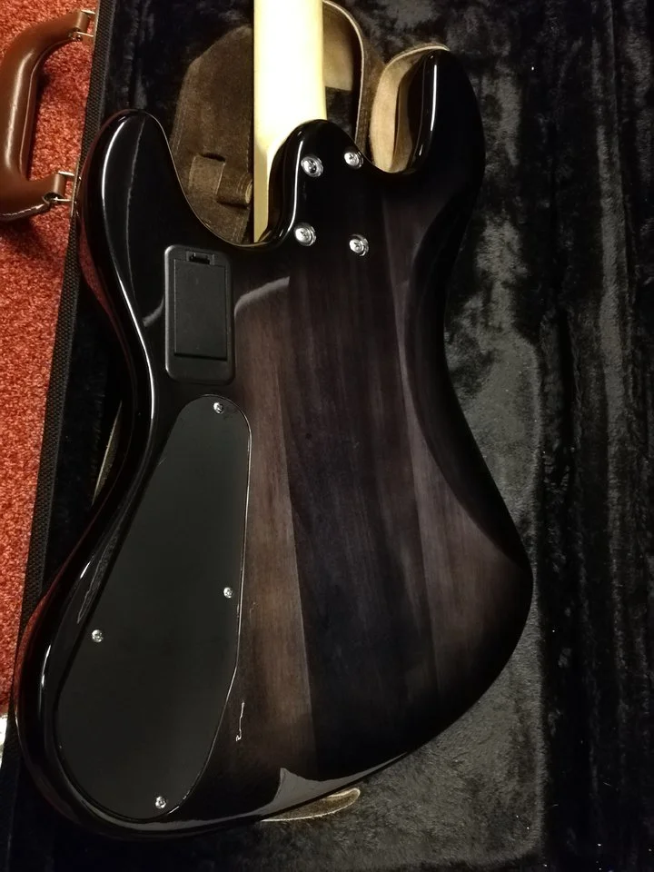 2x Overwater soapbar pickups. 2-band active EQ. Controls for vol (pull bright) / pan / treble / bass