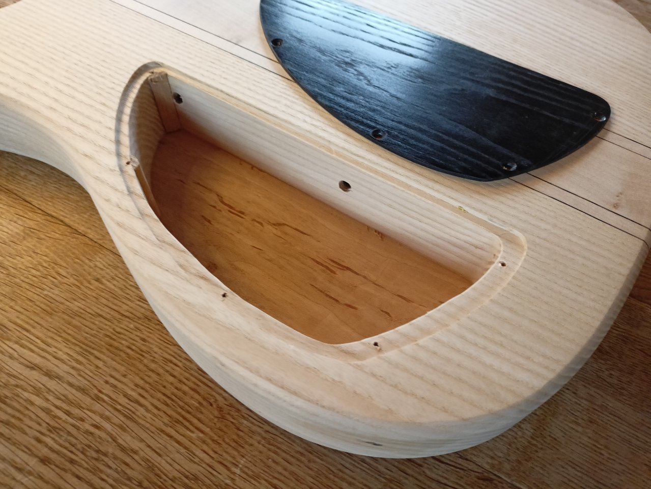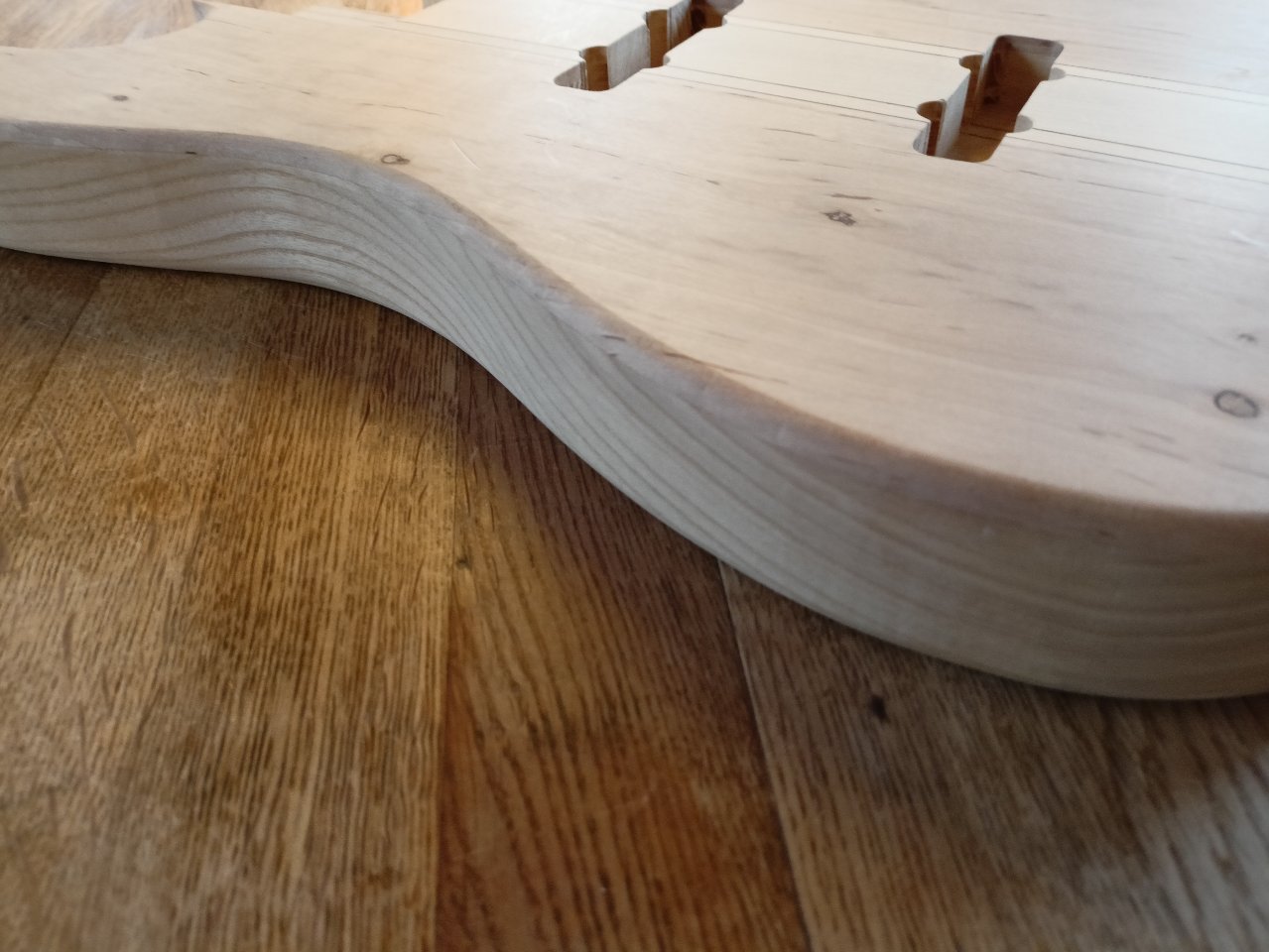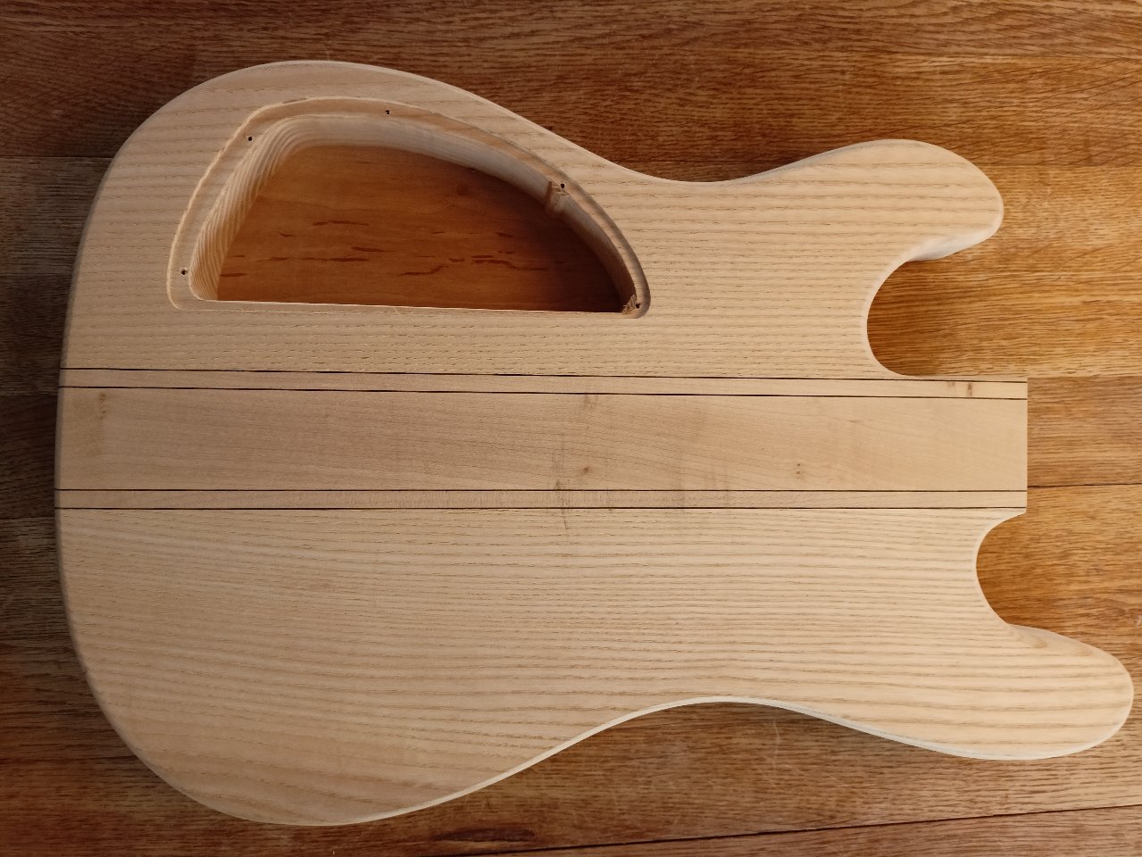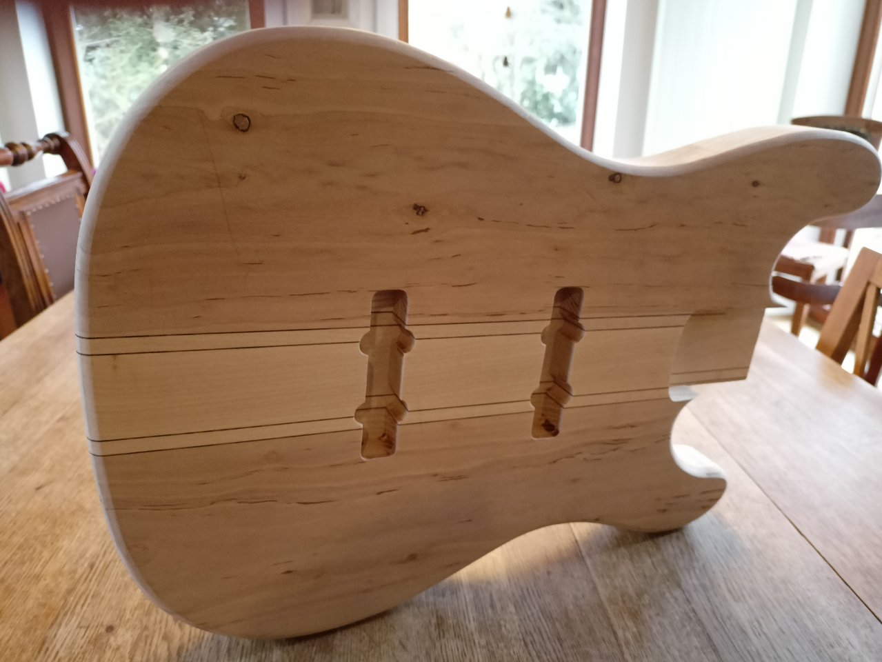 Verkaufe hier einen P-Bass-artigen Body mit J-Bass-Fräsungen zum Bass(-fertig)bau.