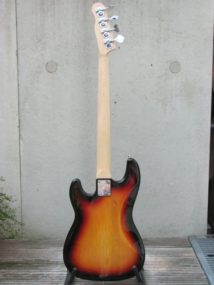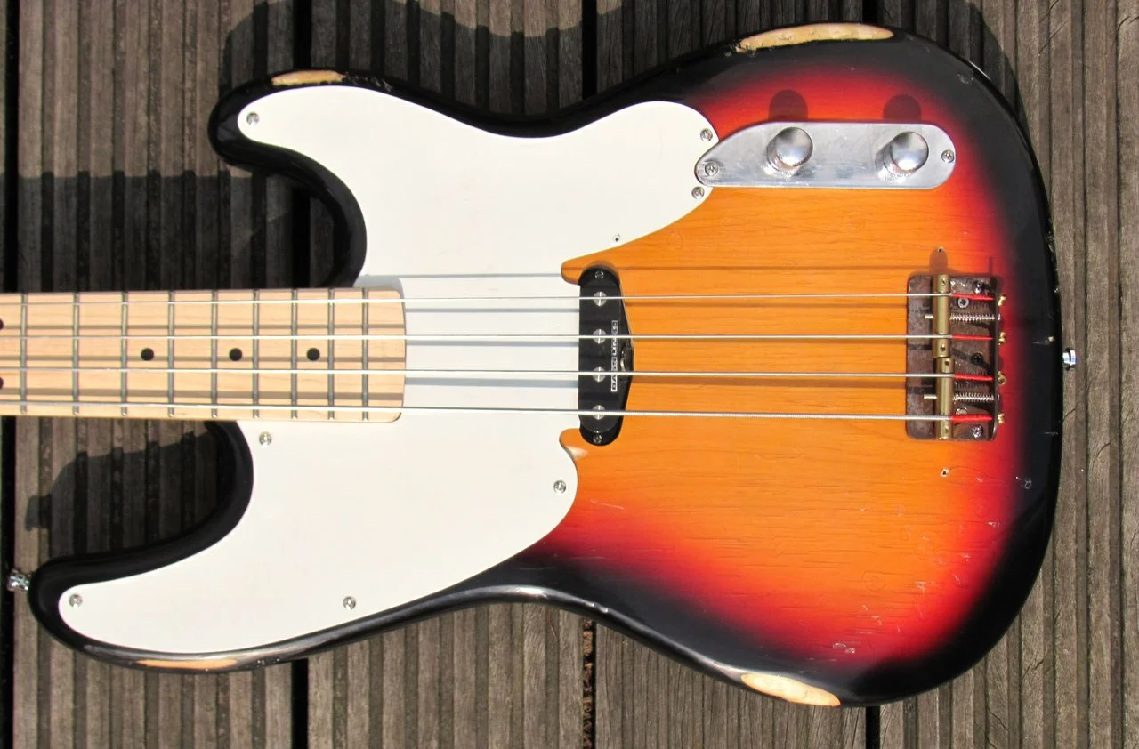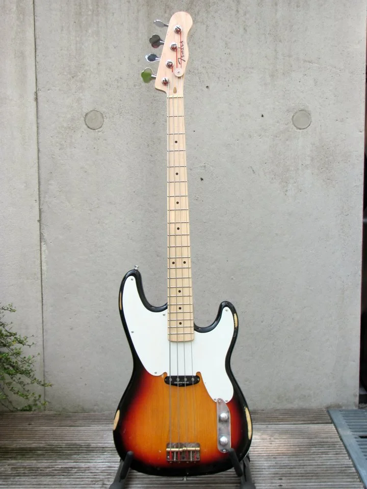 Die Einzelteile dieses Precision hat ein fachkundiger Bastler namens Frank N. Stein nach mehreren Ebay-Fischzügen eigenhändig gealtert und zusammengeschraubt. Heraus kam ein etwas ungestümes, gut aussehendes Monster mit recht kräftigem Hals …