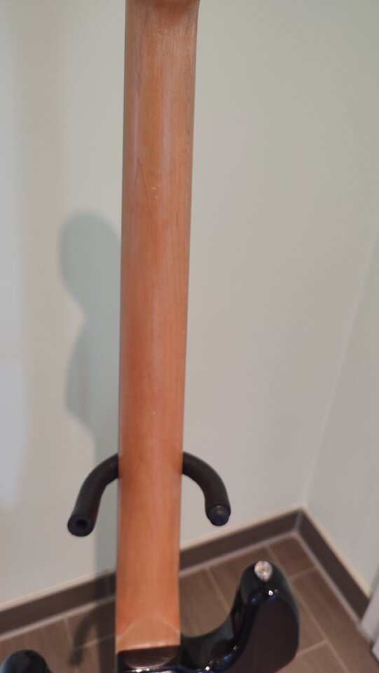 -Hals stammt von einem Squier Affinity Bass (Ahorn, rosewood Griffbrett), die Rückseite wurde entlackt und gewachst. Sehr gutes smoothes Spiel-Feeling. Das Fender Logo ist ein Reparatur-Decal und einlackiert.
