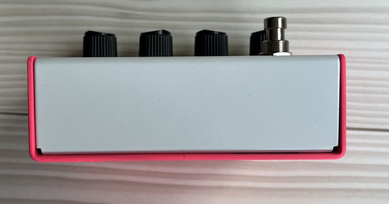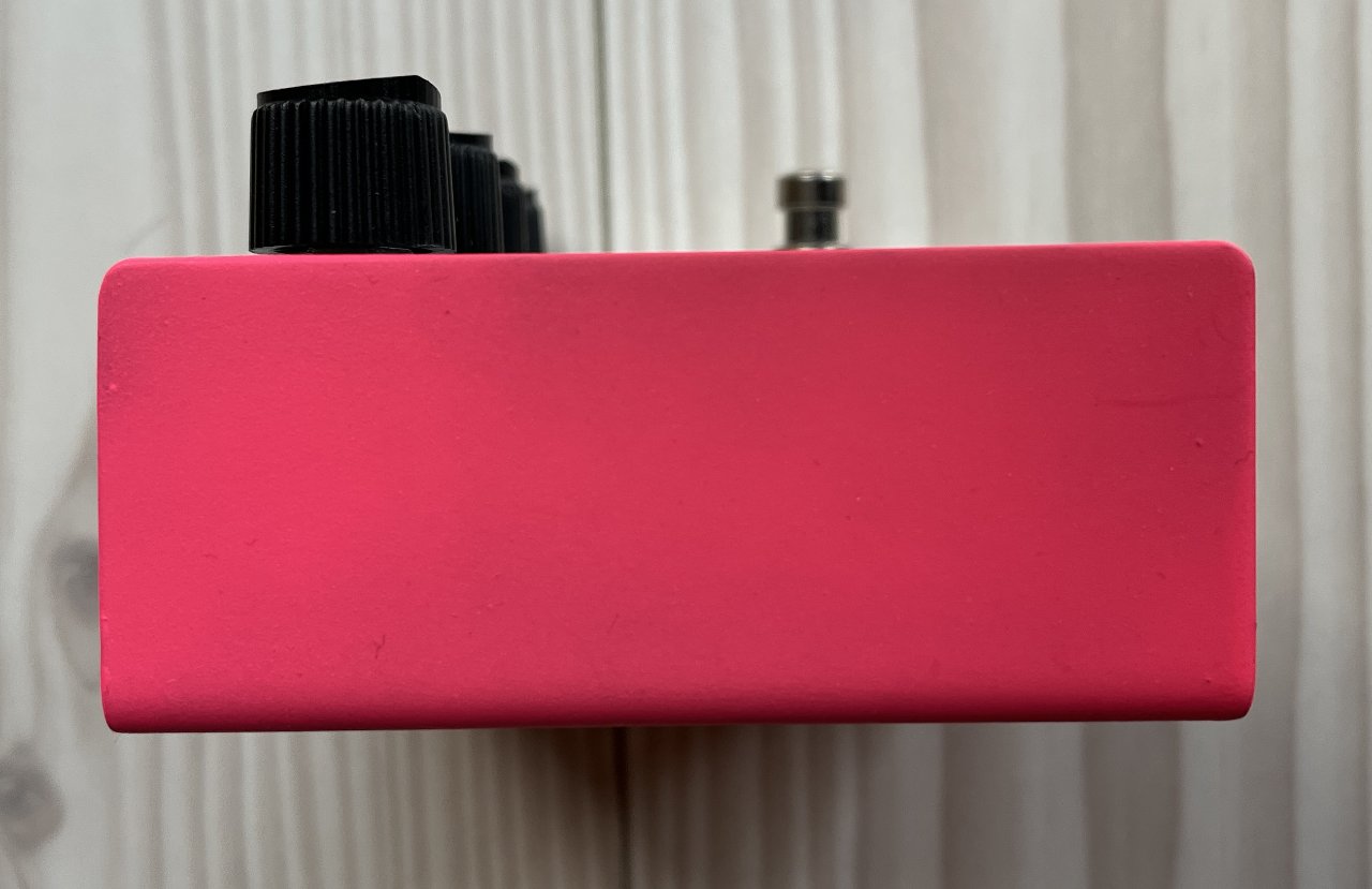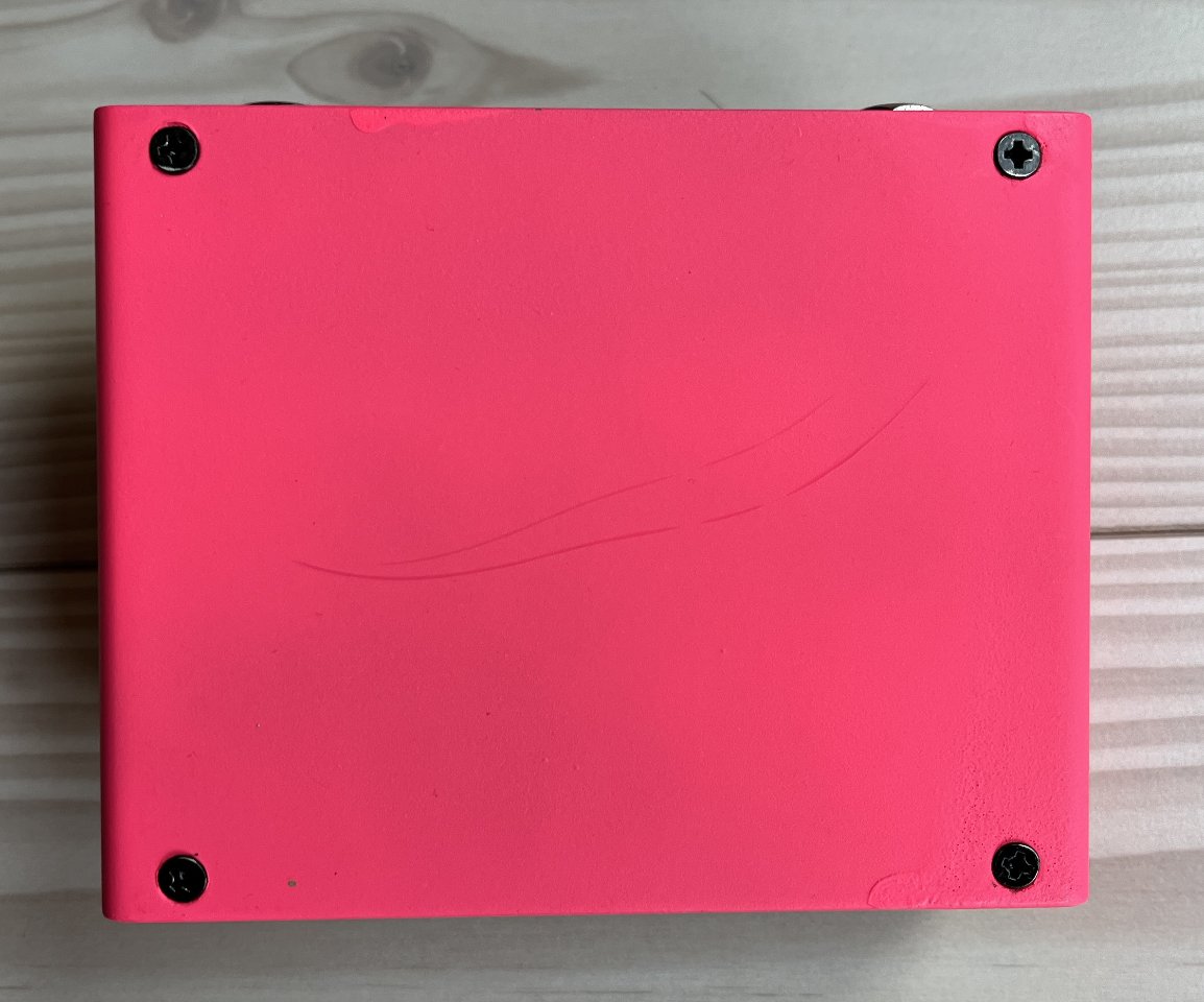 Vor einer Weile war ich genervt von dem typischen Palmer Gehäuse mit den überstehenden Kanten auf der Stirnseite. Mit Winkel-Patchkabeln war das immer blöd anzuschließen und Platz hat es auch weggenommen. Darum hab ich das Gehäuse gekürzt. Das Anschließen funktioniert nun besser und es hat fast die gleiche Größe eines normalen Hammond 1590BB Gehäuses. Bei der Gelegenheit hab ich es in einer viel schöneren Farbe lackiert, neon pink matt.