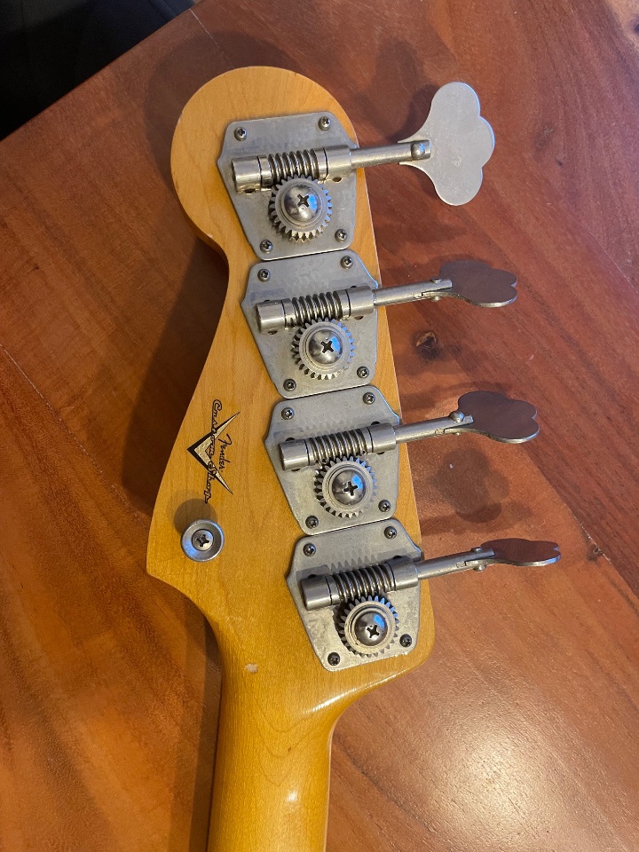 Der Hals unbekannt, kein Stempel o. Ä.; denke das Logo + Custom Shop ist ein Waterslide Decal welches nachträglich angebracht wurde. Die Tuner sind Vintage Reverse Tuner.
