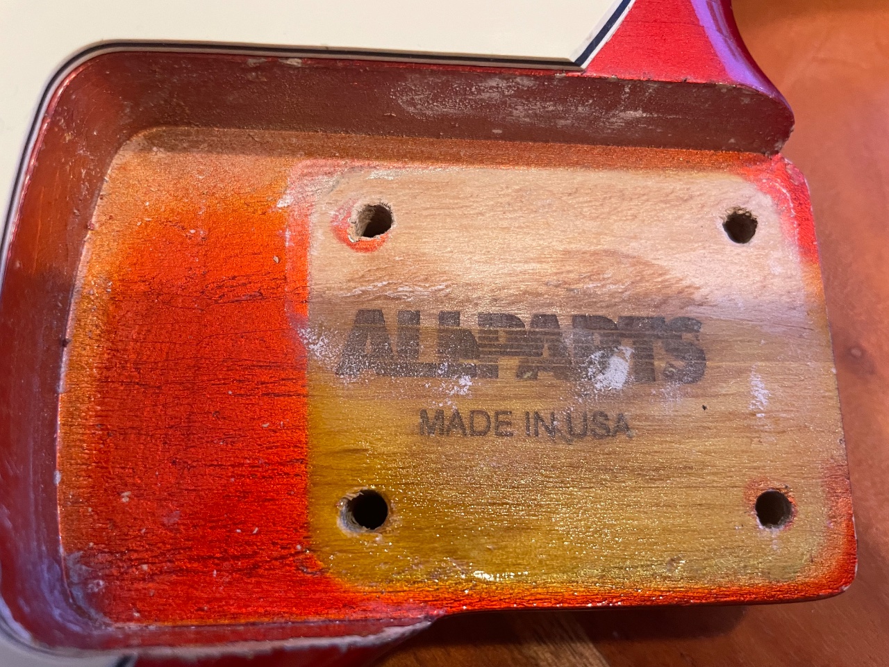 Der Body ist wohl Erle (Allparts - Made In USA) mit Nitrolack.