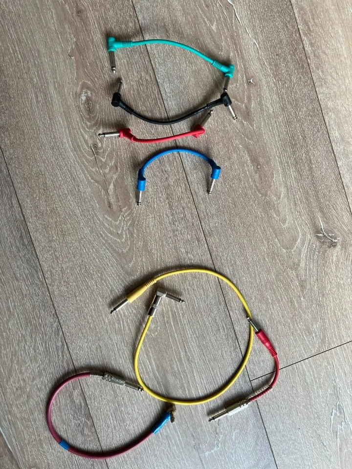 Ich räume auf und verschenke diese Klinken-Patchkabel für Pedalboards. 4x the sssnake 15cm, 3 Eigenbauten.