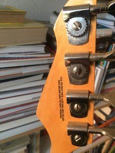 i gegangen, siehe Fotos, allerdings ist er voll funktionstüchtig – der Hals ist ein bi-laminate Konstrukt und hat einen leichten Spalt am Halsfuß – ich habe den Bass in Brooklyn’s Main Darg Music Store 2009 einstellen lassen (seitdem übrigens keine weiter Adjustierung des Spannstabs oder der Brücke mehr notwendig gewesen) und die haben gemeint, dass das bei älteren Peaveys nicht unüblich ist, und wenn sich da nichts weiter bewegt auch keine Maßnahme notwendig wäre (was auch der Fall ist).