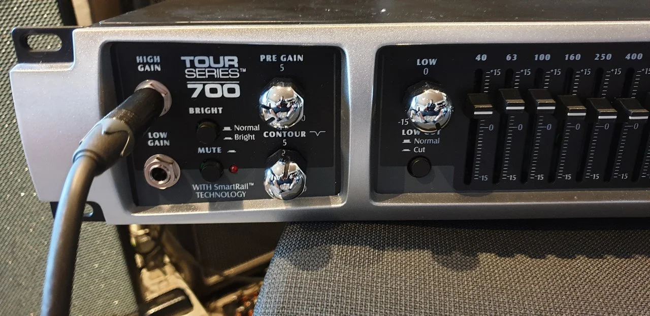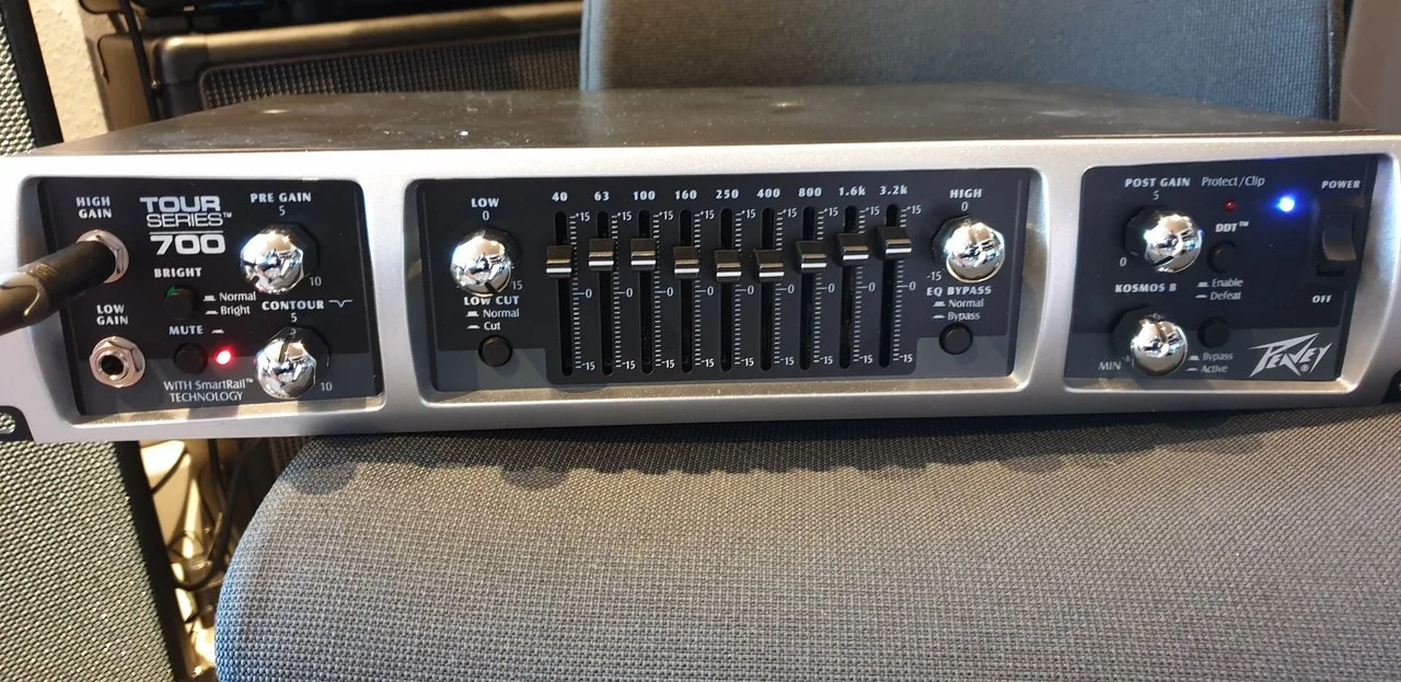 Bassverstärker, 700 W, 9-Band EQ, 1 Kanal, DI-Out, Speakon/Klinke Lautsprecher Anschluss, eingebauter Limiter, Transistor Bass Amp - Features: Bass-Verstärker 'Peavey' Bassamp Tour-700,19' Rackformat mit 2 HE,700 Watt an 4 Ohm, 500 Watt an 8 Ohm,2 Eingänge, jeweils für aktive oder passive Bässe,Ringkerntransformator,DI XLR Ausgang mit Phantomspeisung (störungssicher),zusätzliche Eingangsbuchse an der Rückseite,Pre- und Post-Gain Regler,Contour-Regler,Bright und Low-Cut Schalter,aktive Höhen- und Bassregelung,9-Band Graphic EQ,analoge Octave Synth/Devider regelbar und schaltbar,Effect Loop,Tuner Out,Gewicht: 10,68 kg