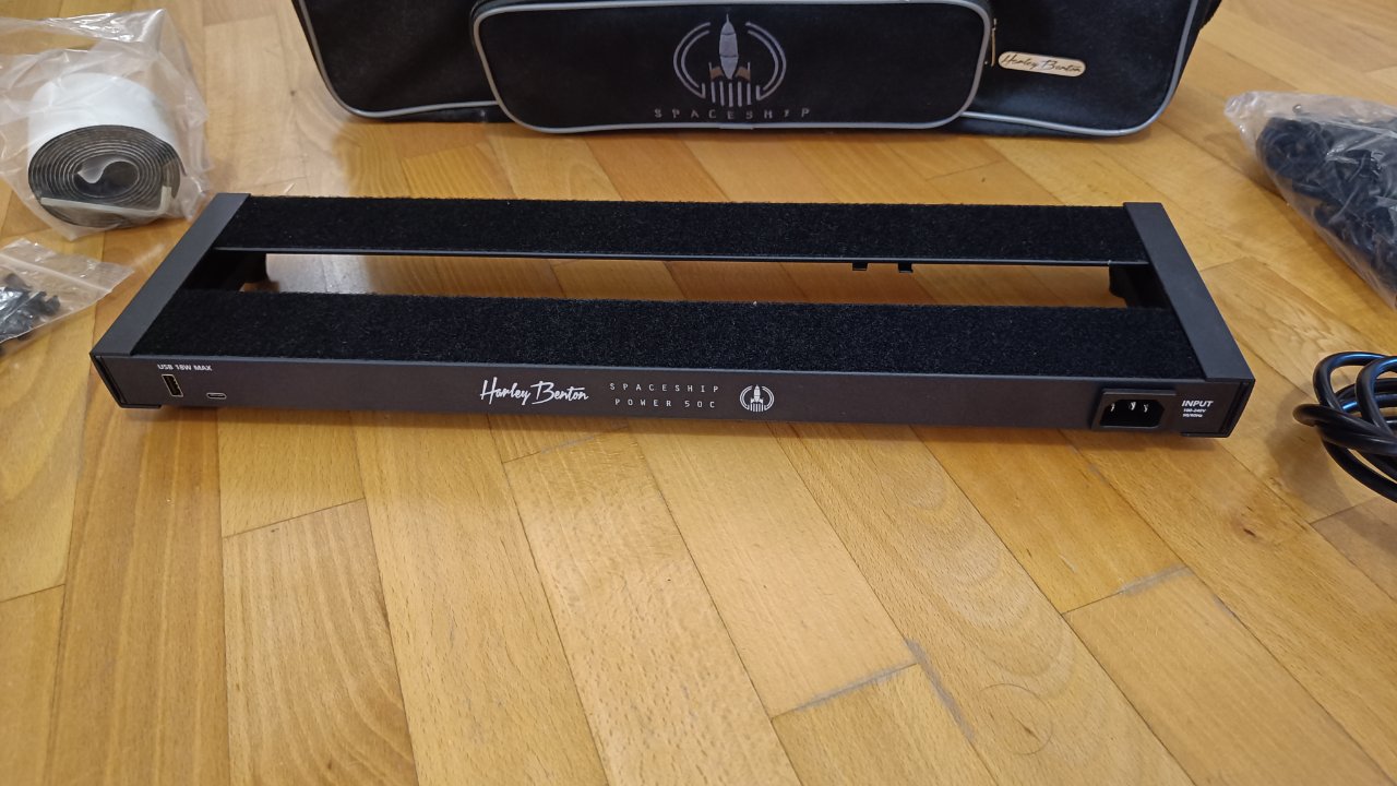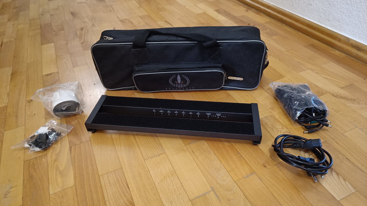 Verkaufe wegen Aufgabe jeglicher Pedalboardversuche ein Thomann'sches Harley Benton Spaceship Power 50C inkl der zugehörigen Tasche, div. Stromverbinder nebst Kabelführungen und einer Rolle Velcro.