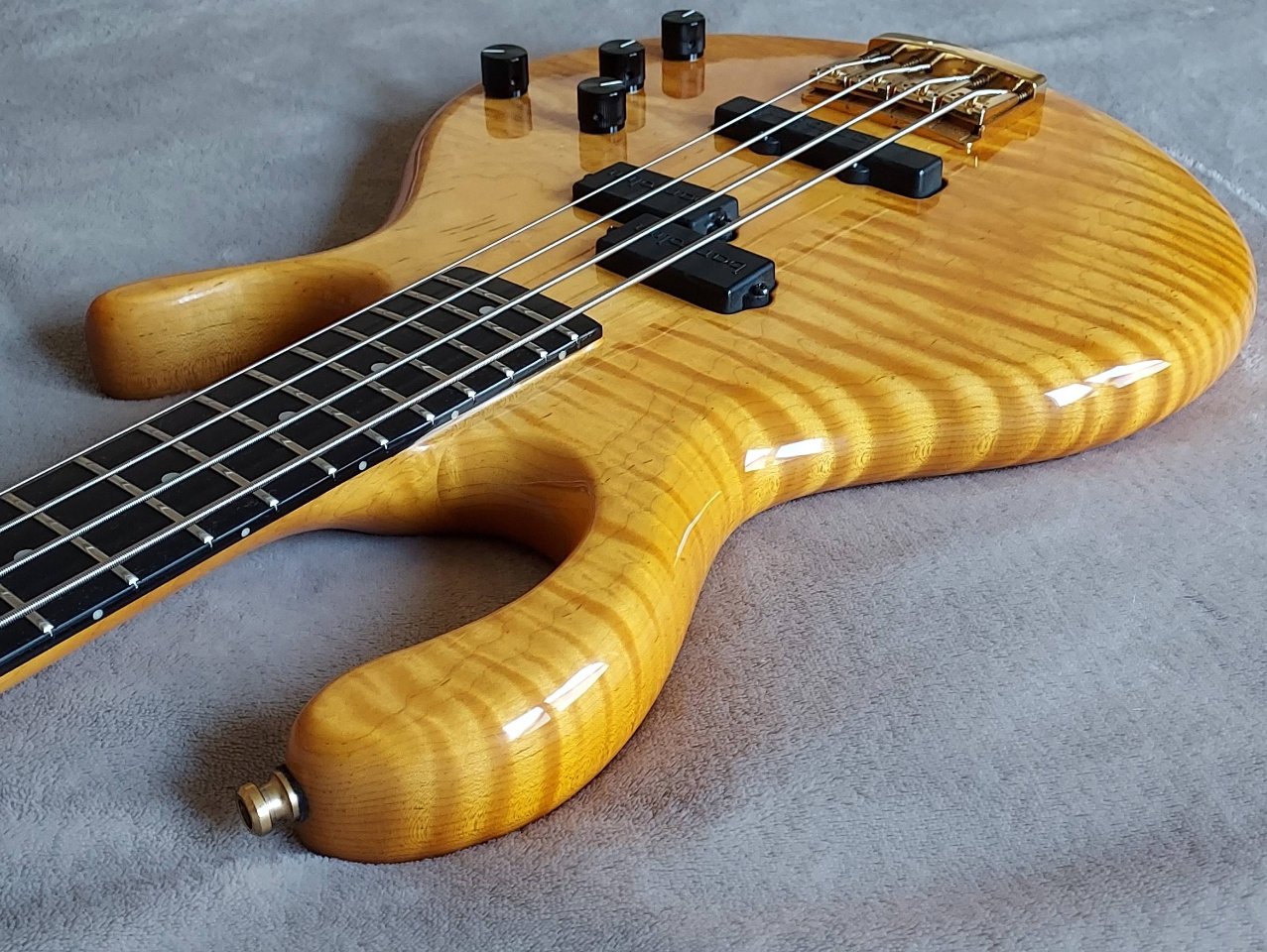 Der Bass ist komplett original und hat maßgefertigte Bartolini-Tonabnehmer, die mit einem Bartolini-Vorverstärker kombiniert sind.
