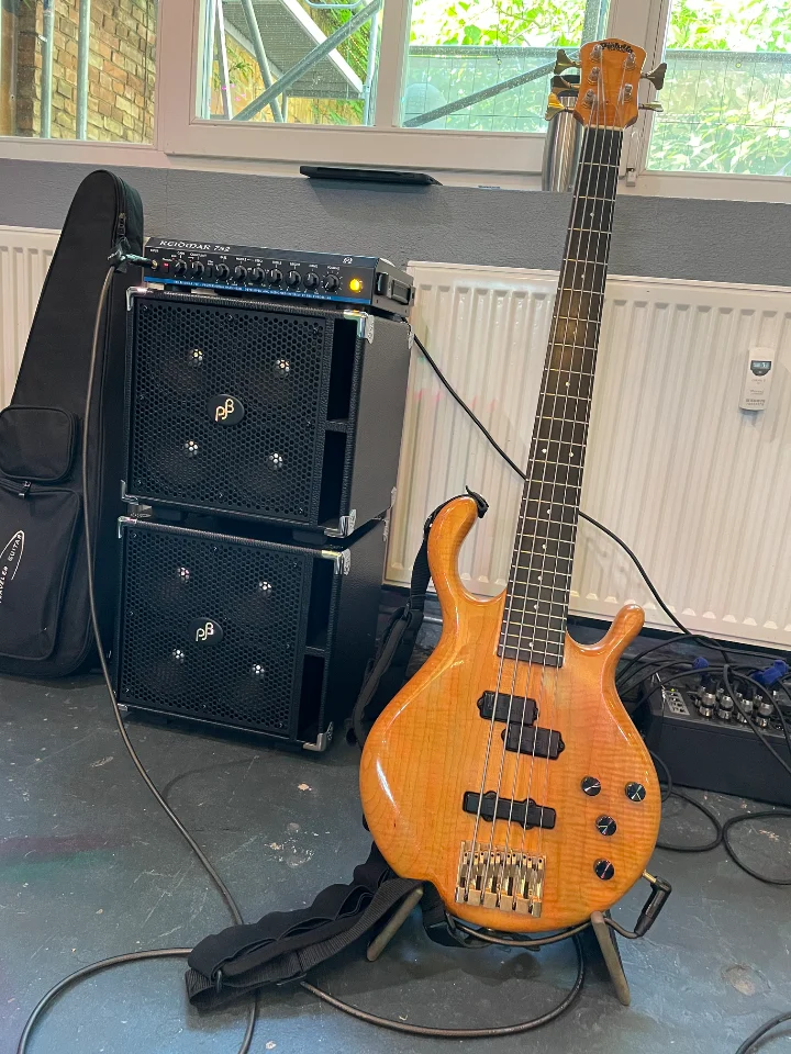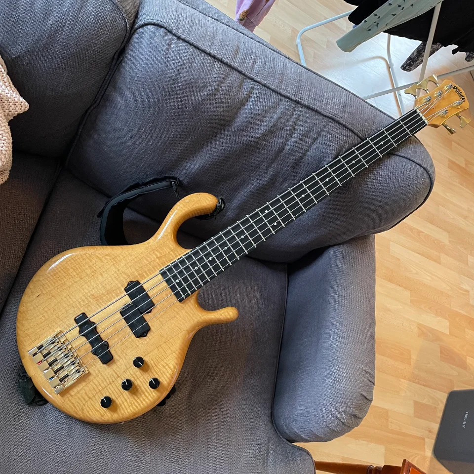 Biete einen eher seltenen Pedulla MVP 5. Es handelt sich hierbei um einen Bass von Michael Pedulla, also made in USA, gebaut 1996 und mit 4,4 Kilogram eher leicht für dieses Modell.