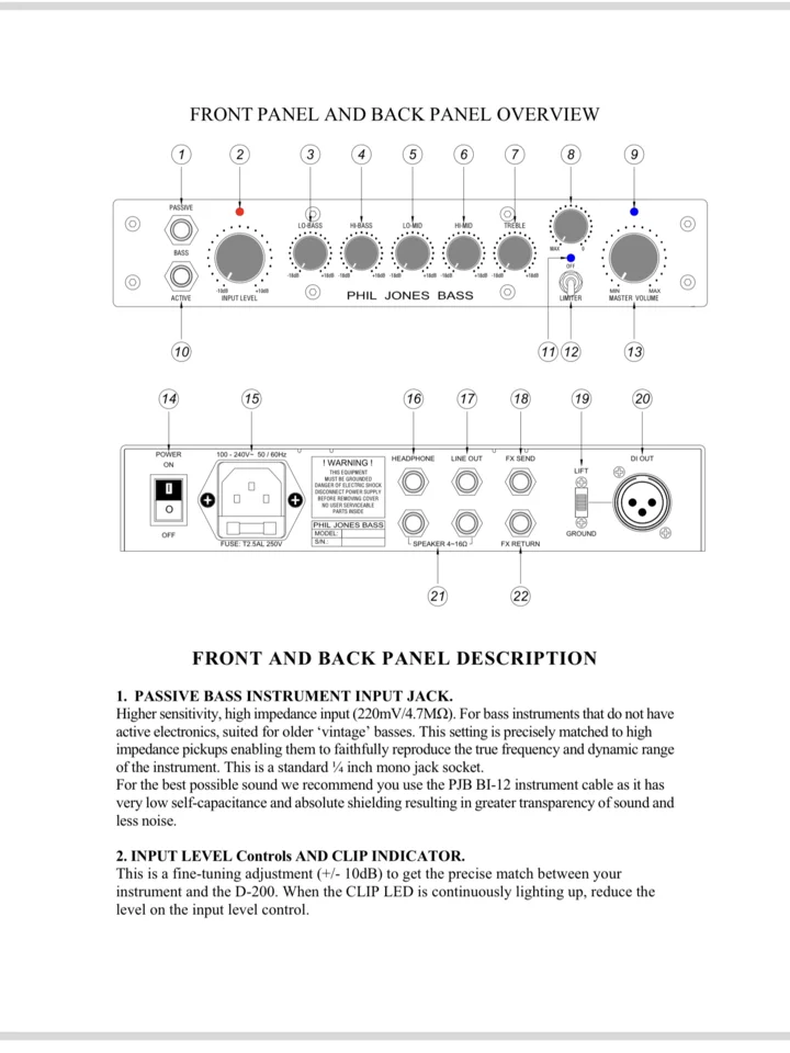Wie alles von PJ ein sehr hochwertiger Verstärker. 5 Band EQ. Kein Kratzer, alle Potis laufen einwandfrei - wie neu! Der PJB D-200 kann auch als Kopfhörerverstärker oder Vorverstärker verwendet werden. Perfekt für daheim, Studio, Proben und Live. Das eingebaute DI ist sensationell. Kopfhörer Anschluß. Komplett mit Tragetasche, Netzkabel und Manual. Universal-Netzteil - überall auf der Welt nutzbar, ohne Transformatoren oder Schalter zu benötigen.