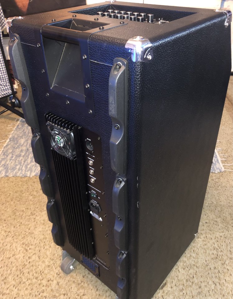 Der Hammer sind aber der Druck und die Bässe. Das Gehäuse hat ja ein fettes Volumen, die seitlichen Reflexöffnungen über die gesamte Höhe und rückseitig unten im Bereich der Rollen nochmals 2 lange Reflexröhren. Wirklich beeindruckend und natürlich easy zu handeln. Hinstellen, Stecker rein, fertig.