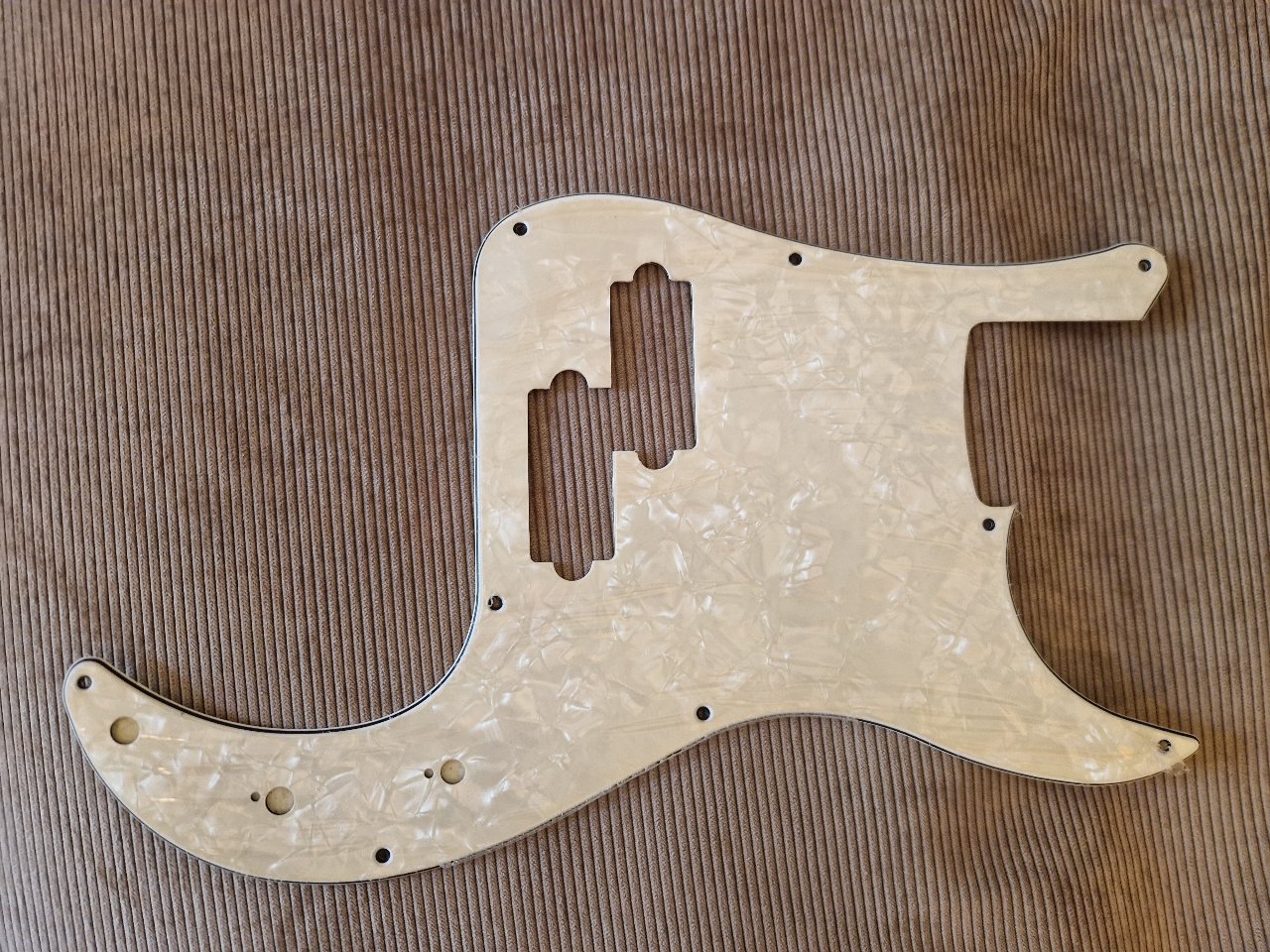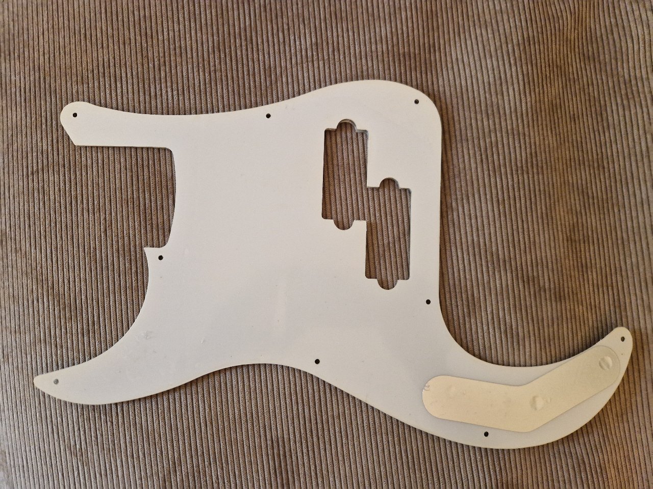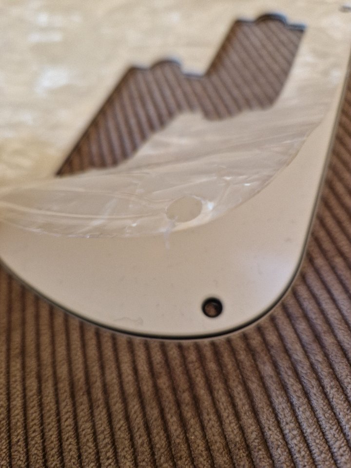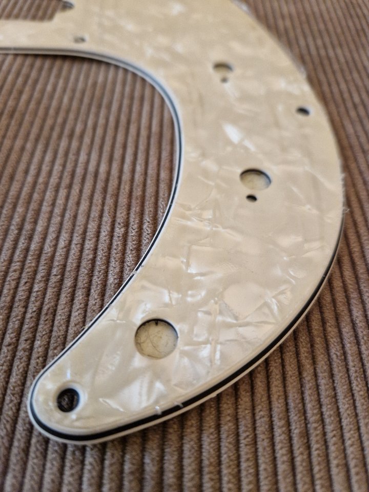 Unbekannter Hersteller, Folie löst sich. Kann man entweder kleben oder ganz abziehen und als weißes Pickguard benutzen.