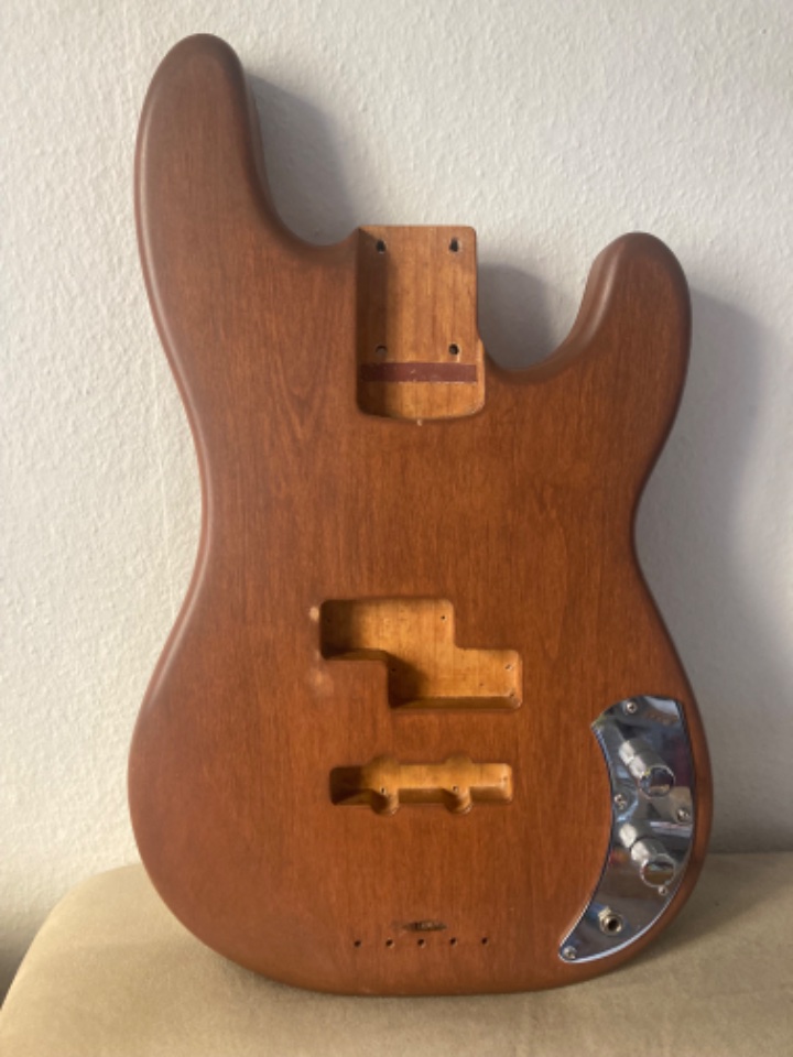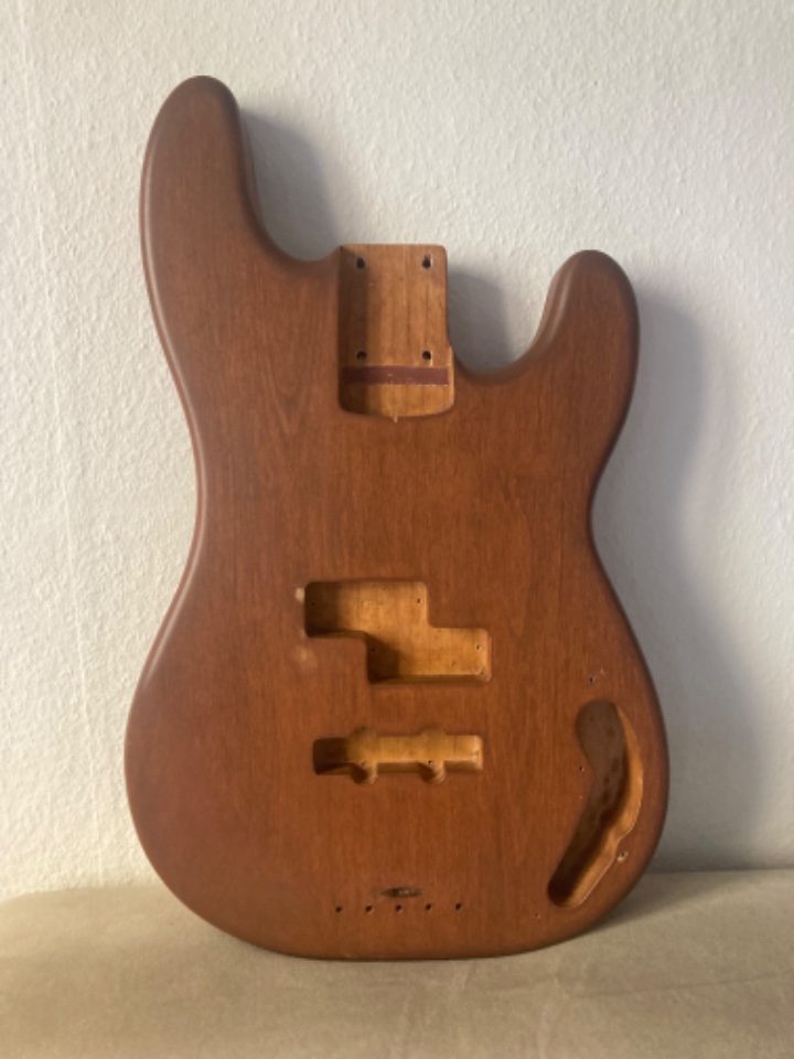 Erle zweiteilig, Halstasche 63,5 mm, Gewicht 2 kg, Ölfinish, normale Gebrauchspuren, Abrieb über dem Pickup, 2 Macken an der Unterseite.