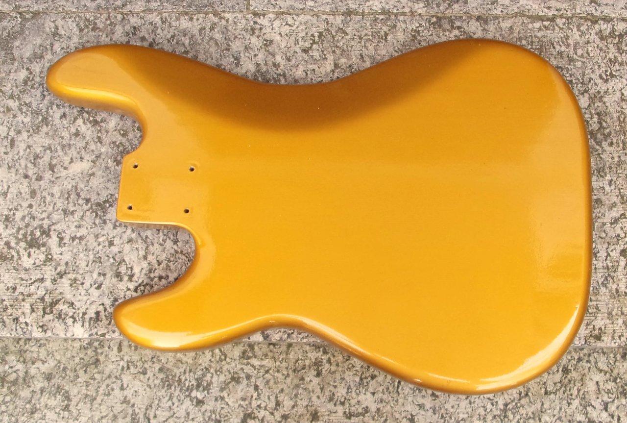 Abzugeben wäre dieser Preci Body aus Erle ( lt. Vorbesitzer made in UK ), lackiert mit Nitro Lack in Aztec Gold ( keine prof. Lackierung, aber recht akzeptabel ).