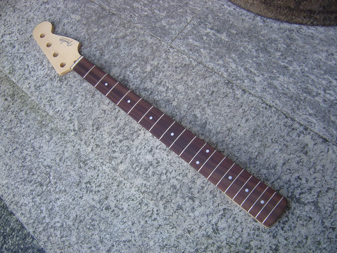 Der Hals ist von Northwest Guitars und für das Geld von ausgesprochen guter Qualität, Ahorn mit Indischem Palisander Griffbrett ( Dalbergia Latifolia ) und einem echten "Knochensattel" !