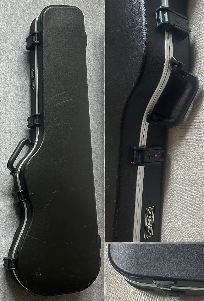 • einen schwarzen SKB FB-4 Hartschalen—Koffer, ohne Schlüssel, mit Nutzungsspuren (110,-€).
