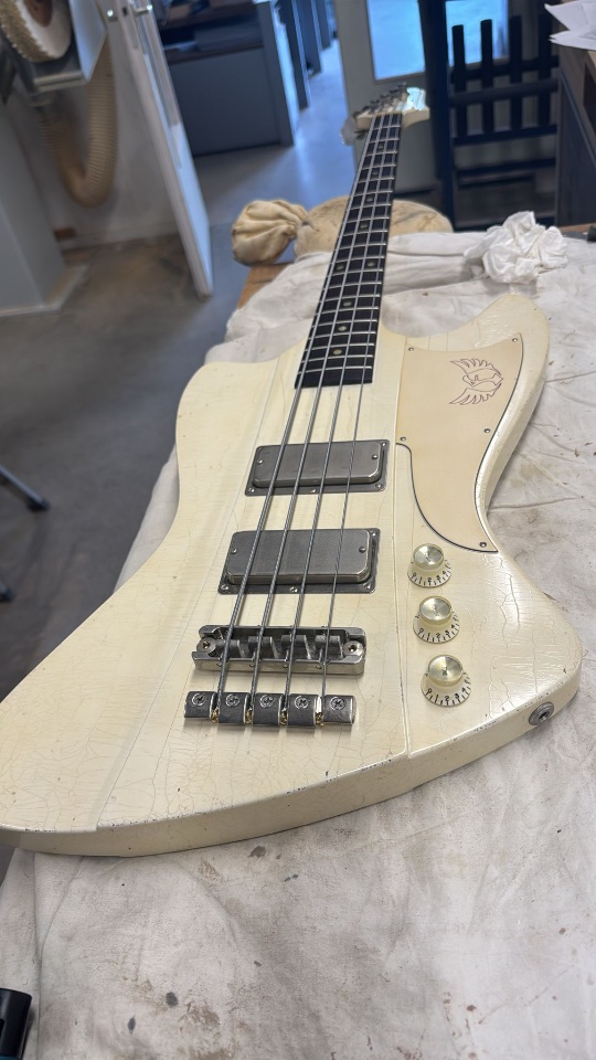 Dieser Bass hat Charakter: Der typische Vintage-Donner, der den T-Bird berühmt gemacht hat – fett, knurrig und angenehm „schmutzig“. Die Pickups liefern einen direkten, druckvollen Ton, und die massive Stahlbrücke sorgt für ein sattes, definiertes Low-End.
