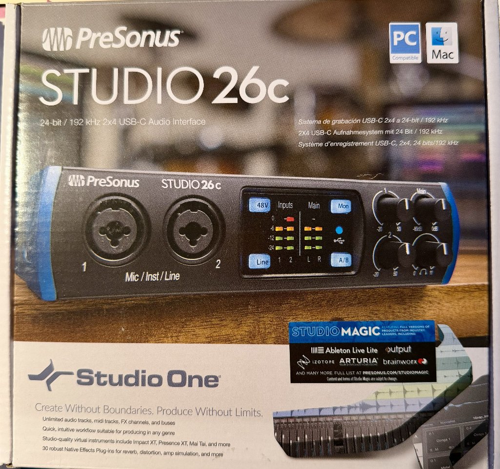 Verkaufe gebrauchtes einwandfrei funktionierendes Presonus Studio 26c Audiointerface von 2023; bei Presonus bereits abgemeldet.