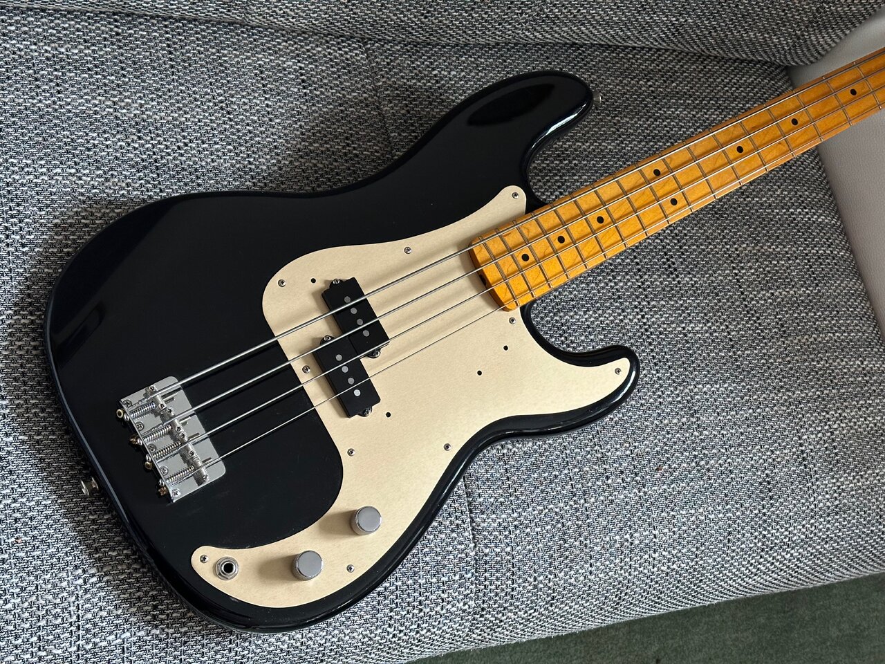 (English below) Ich biete einen Fender Classic Series 50s Precision Bass Lacquer mit wunderschönem schwarzem Hochglanz-Nitrolack.