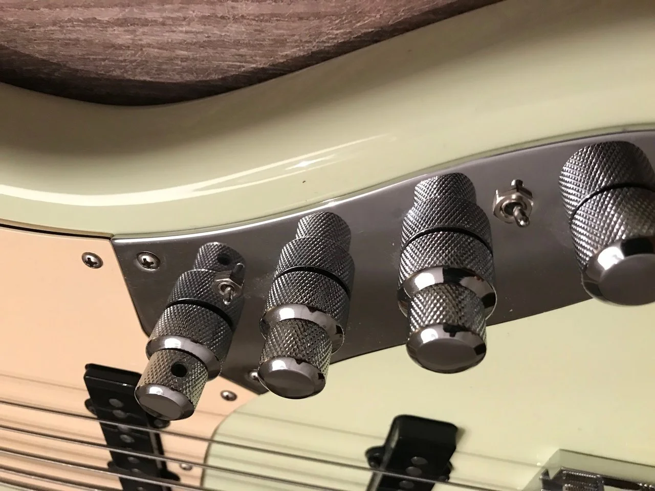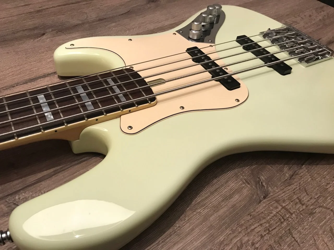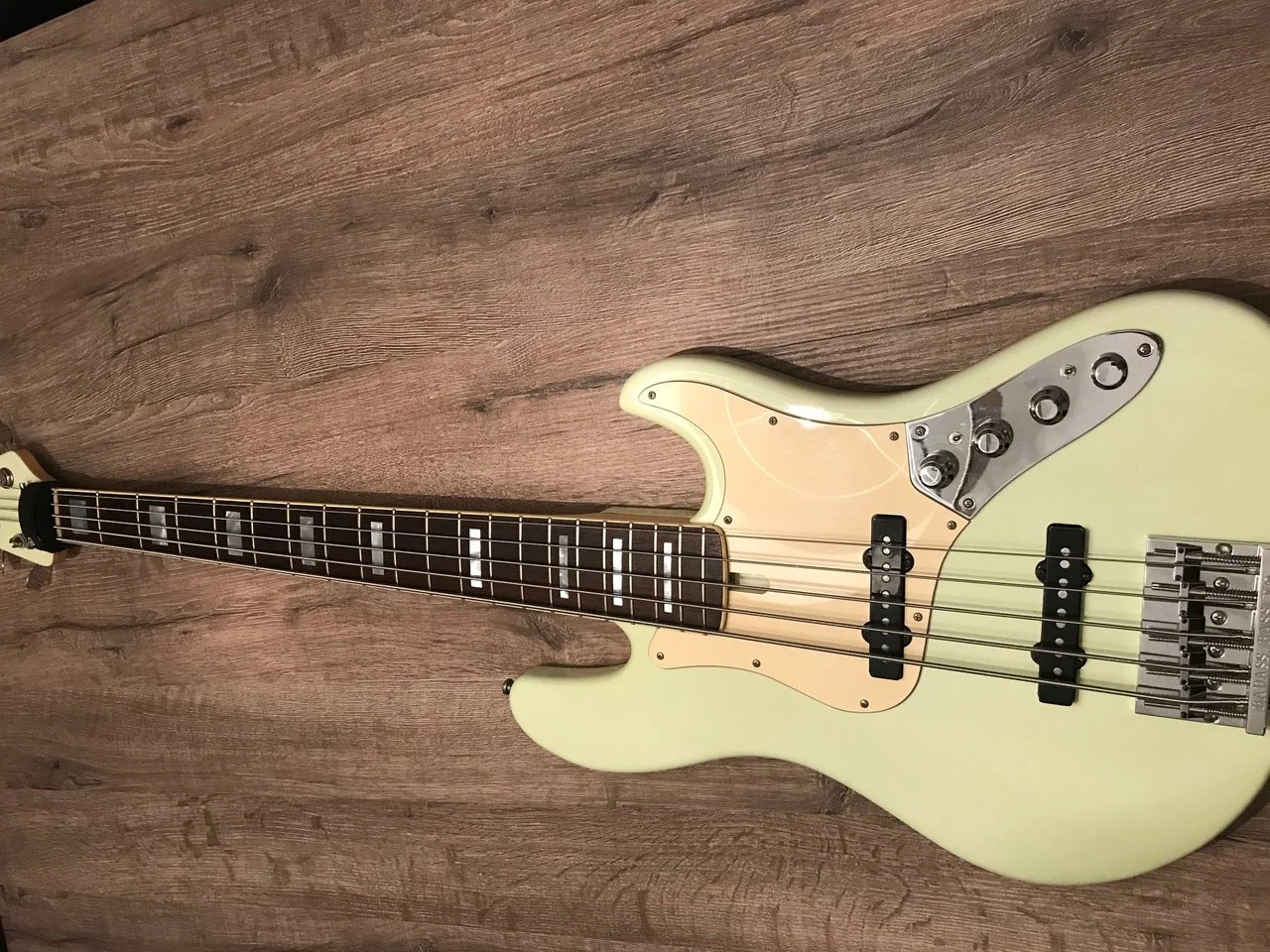 Dieser Bass ist mit einer J-RETRO Deluxe Aktiv-Klangregelung ausgestattet: Volume + passive Höhenblende, PU-Balance, Bass + Treble, parametric Mids.