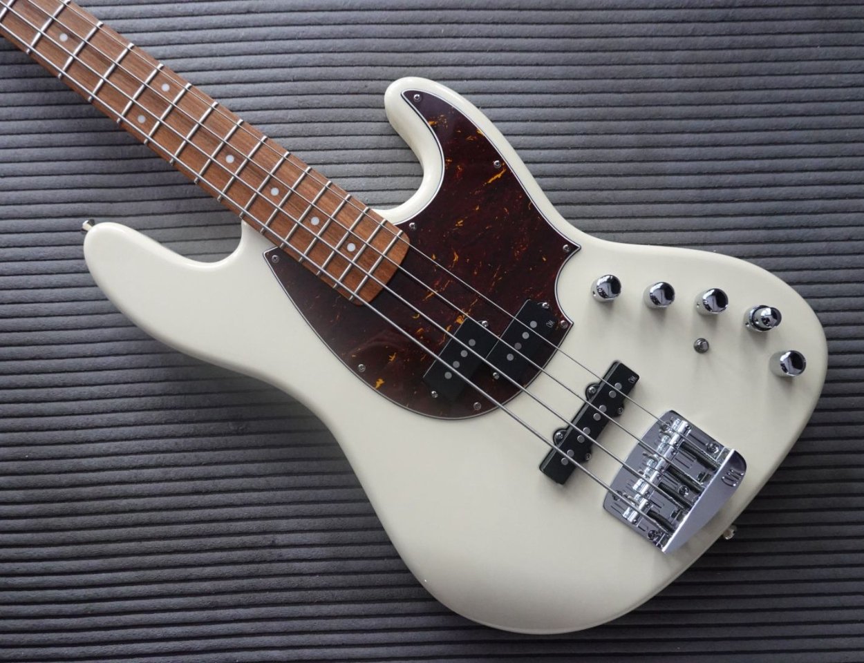 Finish: Creamy white (monolith vintage white according to specification) with tortoise pickguard