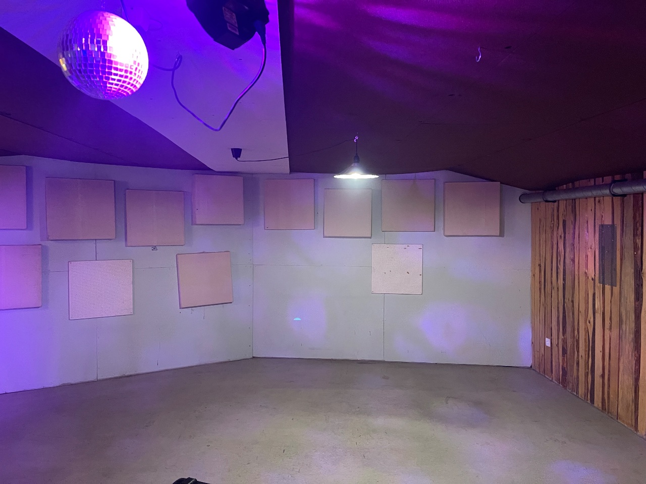 Der Proberaum hat ca. 60m2 (ohne Vorraum) wovon die Hälfte fit von euch genutzt werden kann.