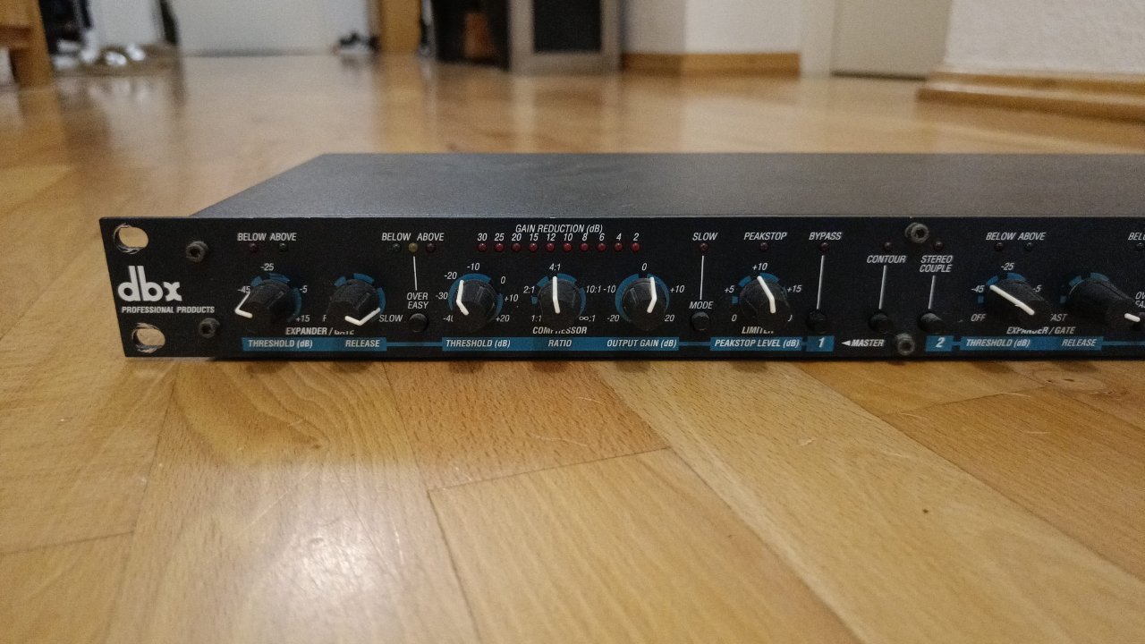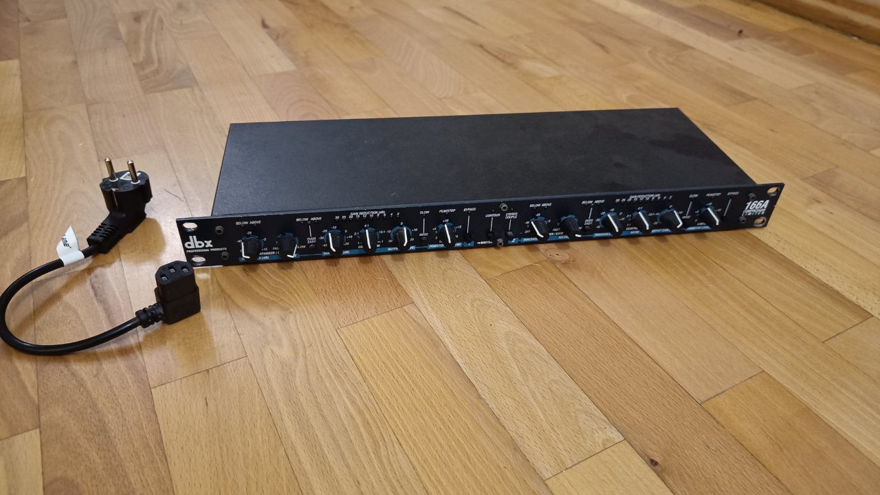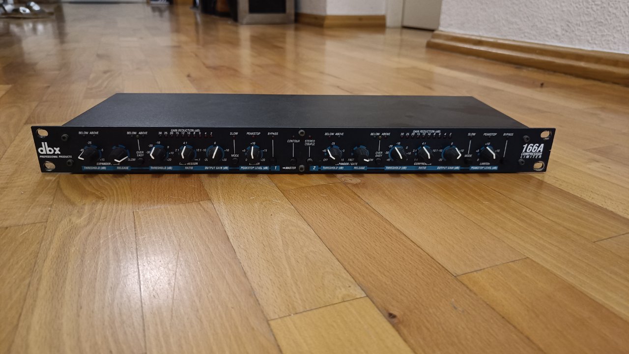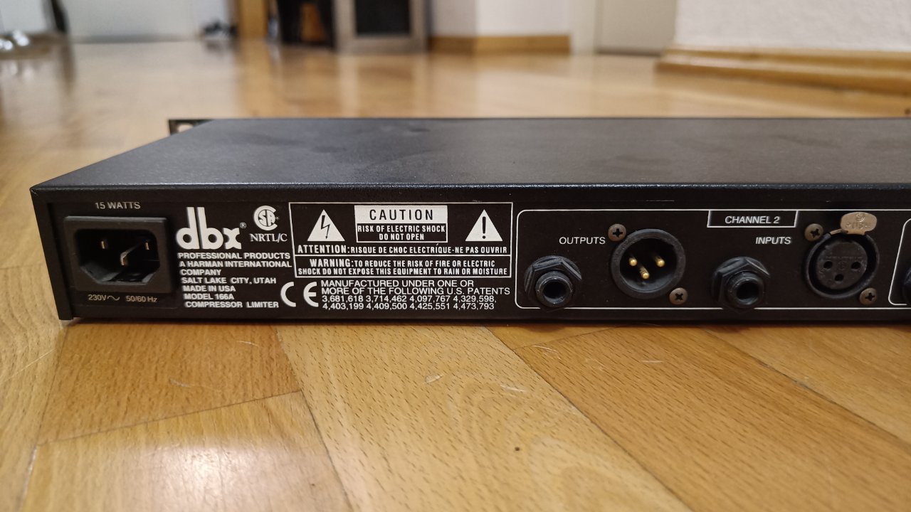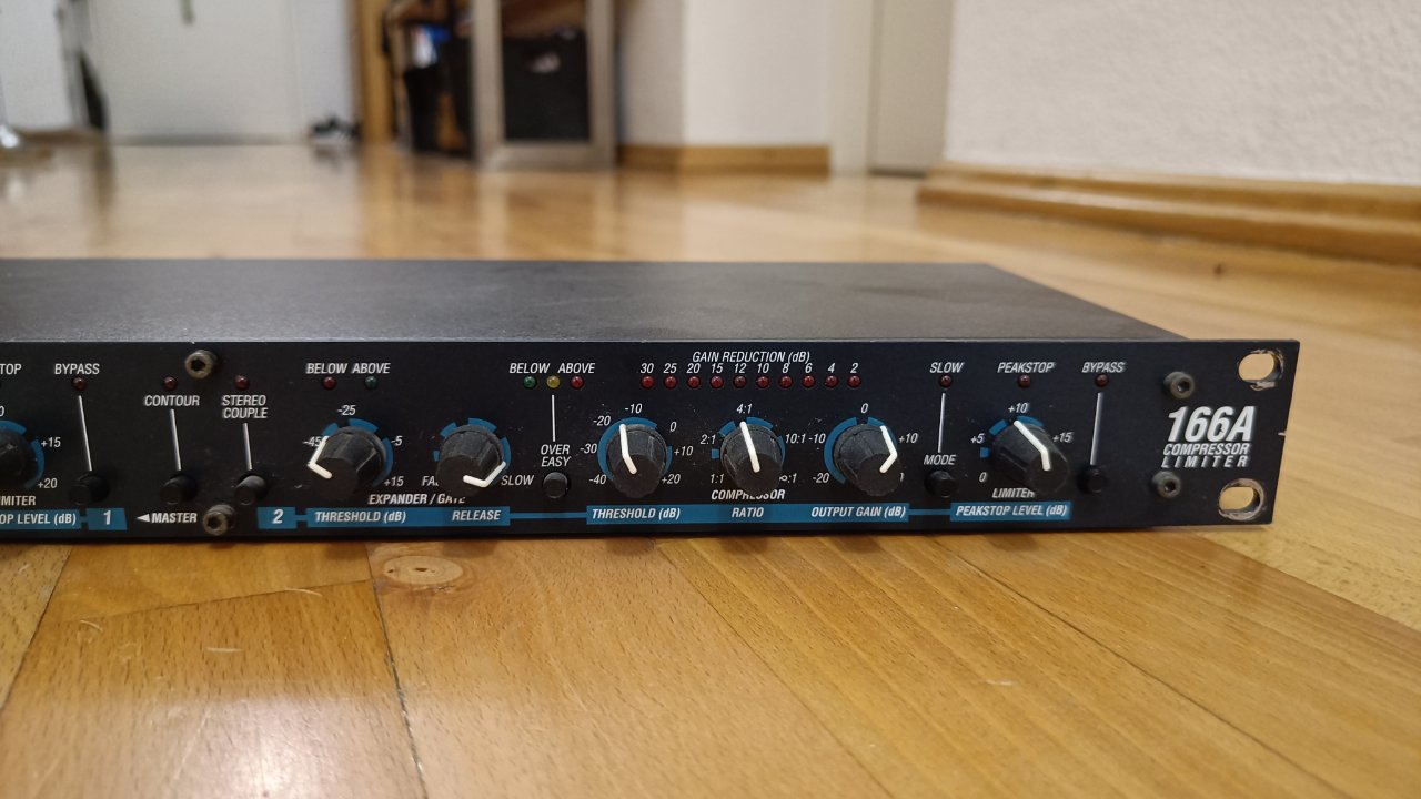 Verkaufe wegen Equipment-Umstellung einen 2-Kanaligen Rack-Kompressor/Gate/Limiter DBX 166A. Funktioniert, wie er soll. Kratzer Unterseite von Rackeinbau. Sonst normale Gebrauchsspuren (s. Fotos). Kleines Stromkabel für kurzen Anschluss im Rack ist dabei (s. Foto)