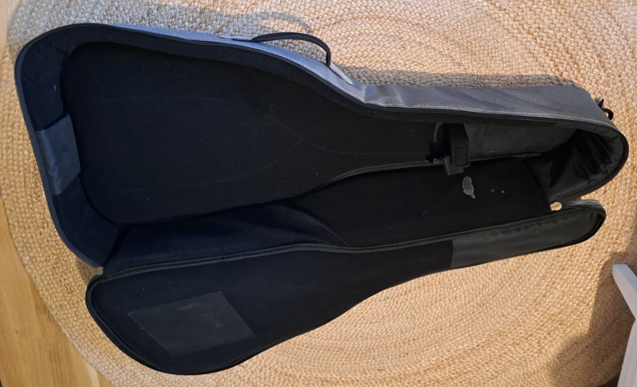 Zum Angebot gehört eine passende und gut gepolsterte Gitarrentasche der Marke Ritter.