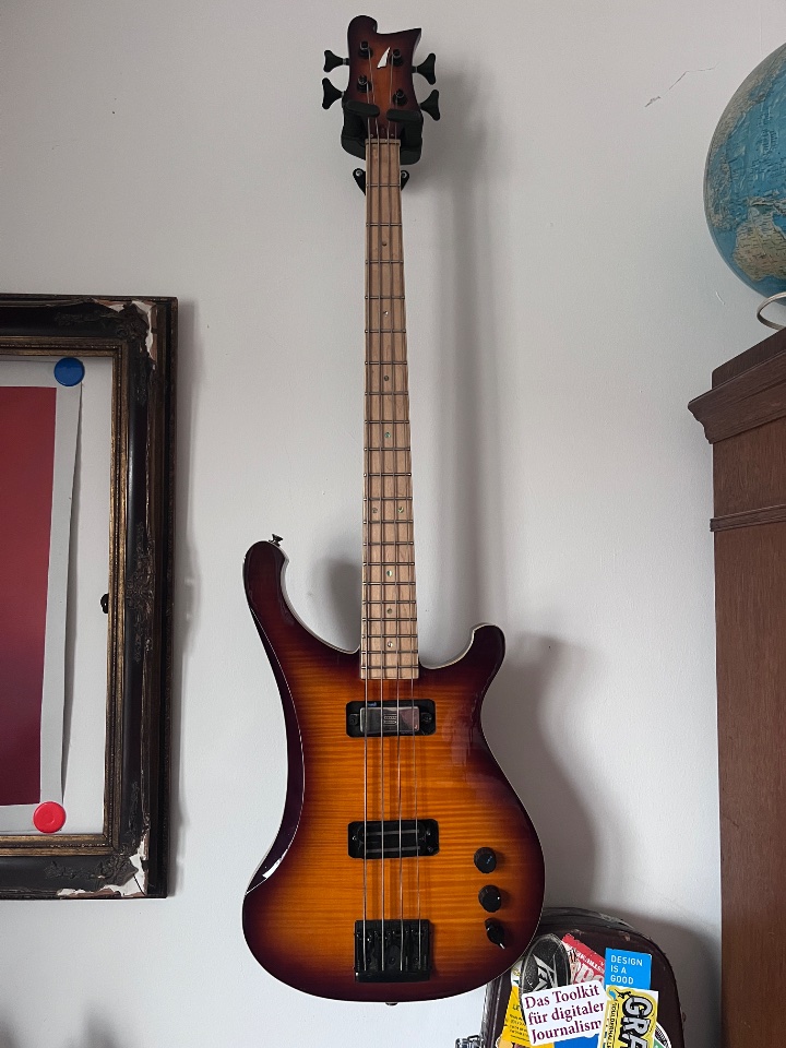 Habe den Bass nach meinen Vorstellungen optimiert: einstellbarer Messingsattel, Schaller Bridge in schwarz, schwarze Mechaniken (Sandberg), Seymour Duncan Rick PickUps, 2 x Vol und Lemme Filter (war die Idee des Vorbesitzers). Damit bekommt der Bass den Rick Growl und ist gleichzeitig sehr vielseitig.