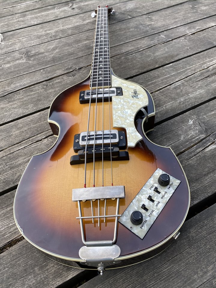 Originaler Höfner 500-1 Bass in sehr gutem original Zustand und Koffer. Anhand der üblichen Interpretationshilfen und der wie üblich fehlenden Sereinnummer dieser Modelle, haben wir es hier mit einem Mit-1970er Exemplar zu tun!