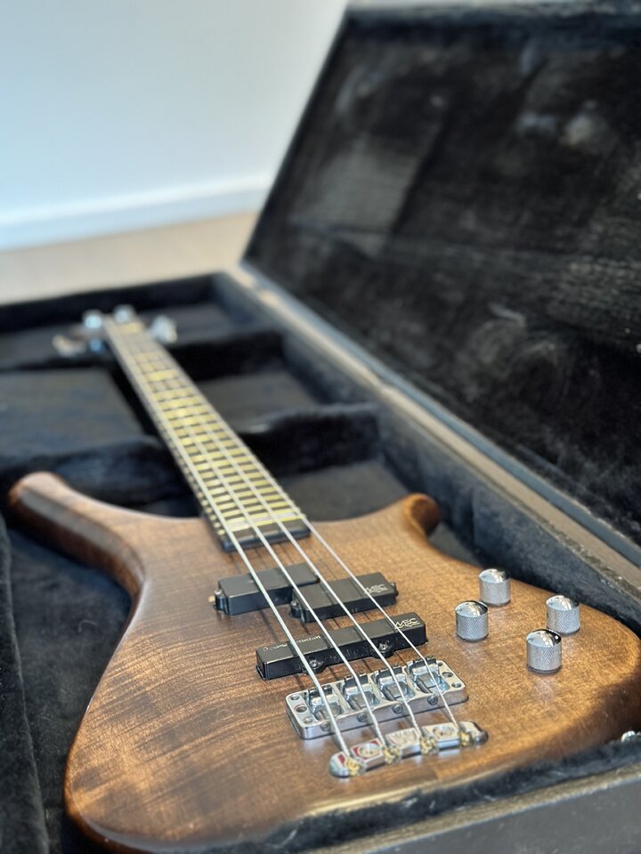 Ich habe den passiven Bass Anfang 2023 bei Beyer Music in Bochum komplett reinigen, einstellen und mit neuen Saiten versehen lassen. Seitdem wartet er auf Euch