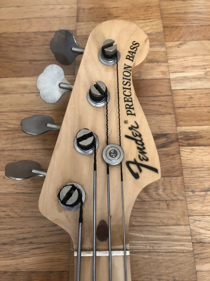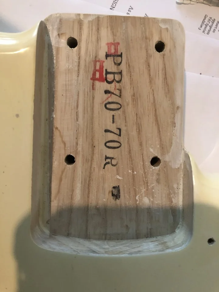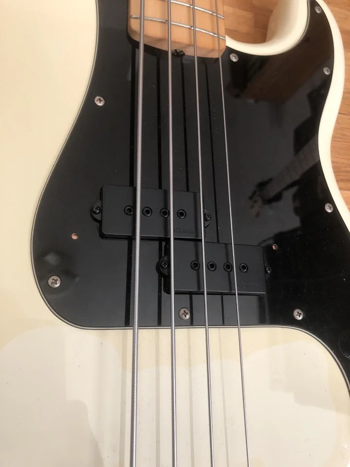Die Upgrades wurden vom Vorbesitzer ausgeführt: Hipshot Bridge, DiMarzio Model P Pickup, Kupfer Abschirmung usw.