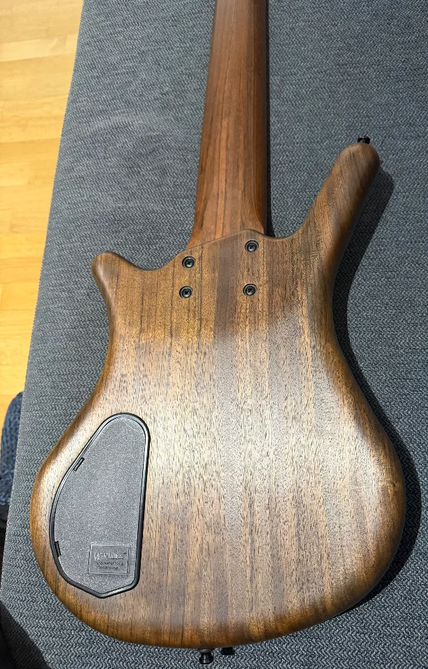 Der Klang des Jahres 2000: Die frühen 2000er gelten unter Warwick-Kennern als besonders gute Produktionsjahre. Der Thumb Bass hat einen unverwechselbaren Growl-Charakter mit starkem Tieftonanteil, der dennoch klar und definiert bleibt. Trotz kurzem Oberhorn und kompaktem Korpus ist er überraschend gut ausbalanciert. Ein Wort zur Besonderheit von Ovangkol-Bässen: Im Gegensatz zu früheren Thumb-Modellen mit Bubinga-Korpus wirken Ovangkol-Ausführungen etwas leichter und liefern einen etwas helleren Grundcharakter – mit demselben fundamentalen Thumb-Growl, aber zugänglicherer Balance.