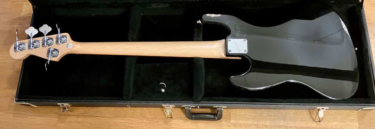 Insgesamt eine nette Bastelgrundlage. Mir ist das Hals einfach zu flach, daher darf er weiterziehen. Gern Abholung in Potsdam, Versand mit abgeschraubtem Hals aber natürlich auch kein Problem. Verkauf ohne Koffer, nur fürs Foto genutzt
