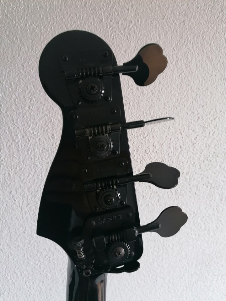 - Fender 70s Vintage-Style Stamped Open-Gear Mechaniken mit Hipshot Bass Xtender "Drop D" an der E-Saite