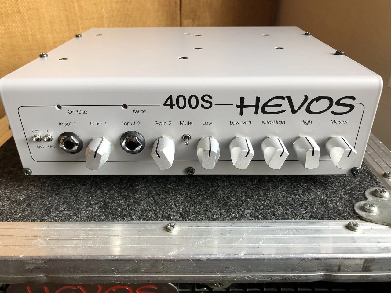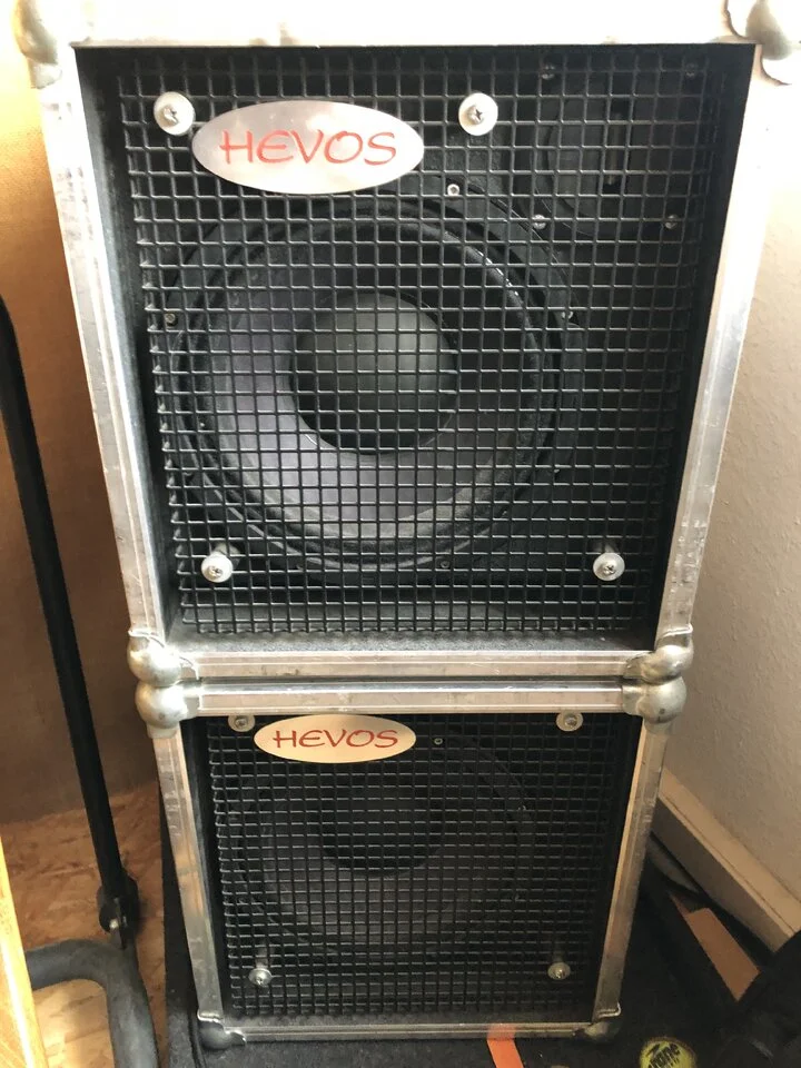 Zum Verkauf steht ein Hevos Stack, bestehend aus einem 400s Topteil (mit Original Tasche) und zwei Midget 10“ Boxen, einmal mit Schlitz-Hochtöner, einmal ohne.