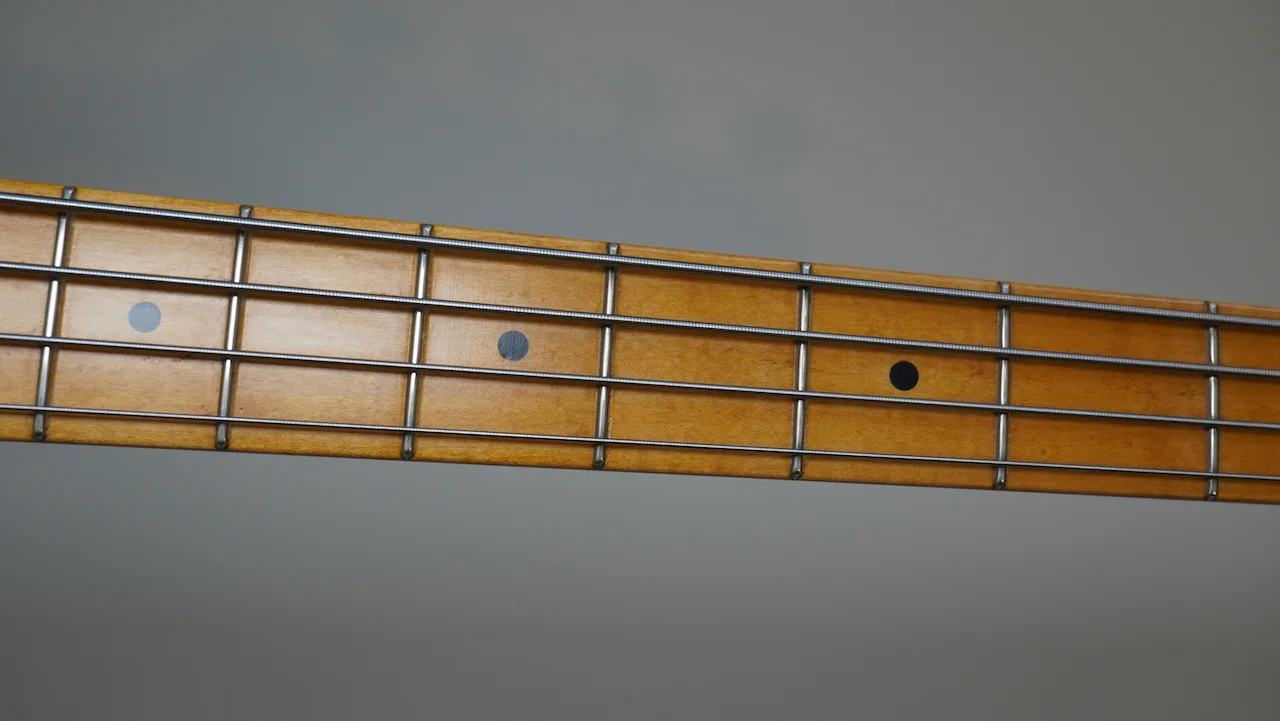 Er ist nach altem Vorbild gebaut, besitzt also keine großen „Belly-Cuts“ und eine gute alte 2-Band-Klangregelung. Dazu einen Eschekorpus mit leckerem One-Piece-Maple-Neck. Luis Johnson, Bernard Edwards und Timmy C lassen grüßen. Dennoch lässt er sich sehr angenehm spielen und gehört mit einem Gewicht von nur 4,2 Kg eher zu den leichten MM-Style Bässen mit 70s-Maßen.